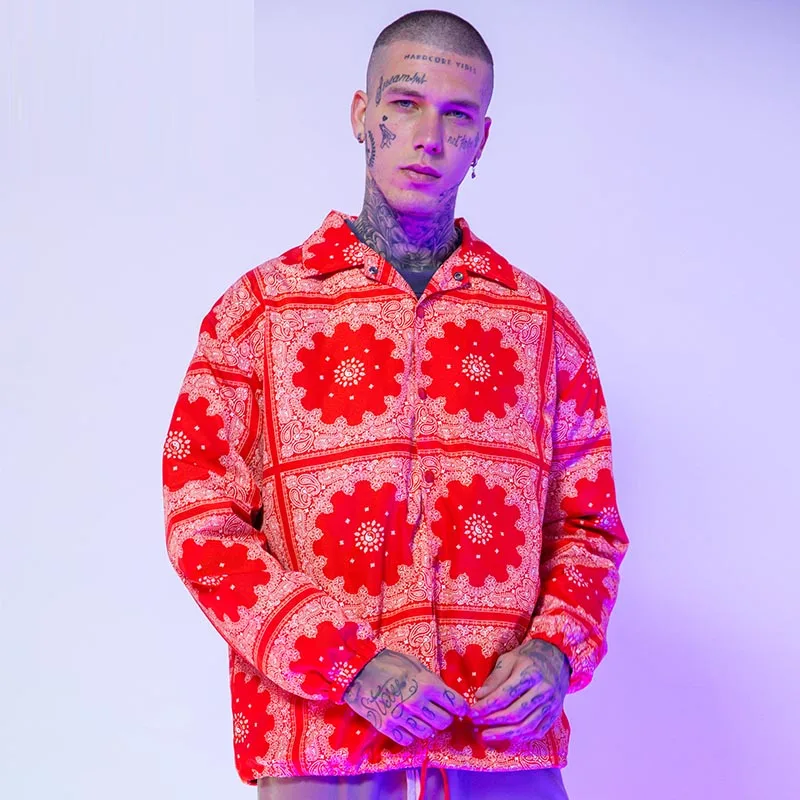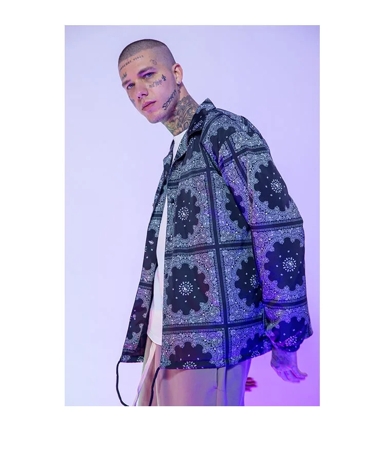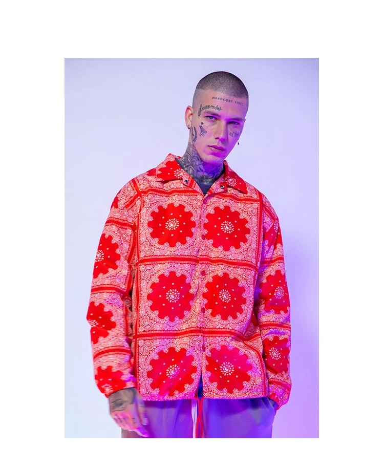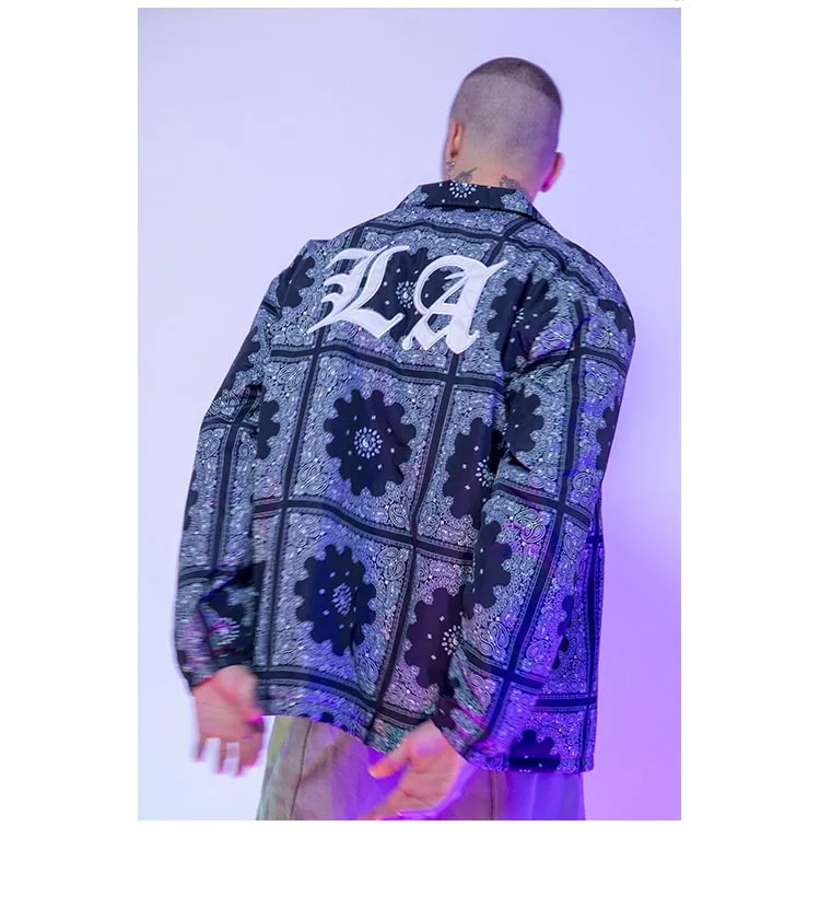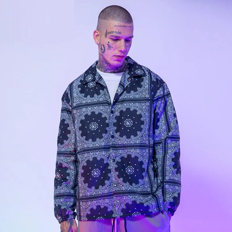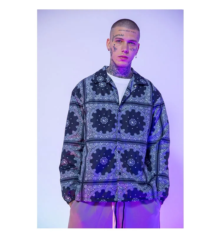 Куртка мужская свободного покроя, повседневная одежда для езды на скейтборде, с принтом кешью, цветочной вышивкой, для осени и зимы
