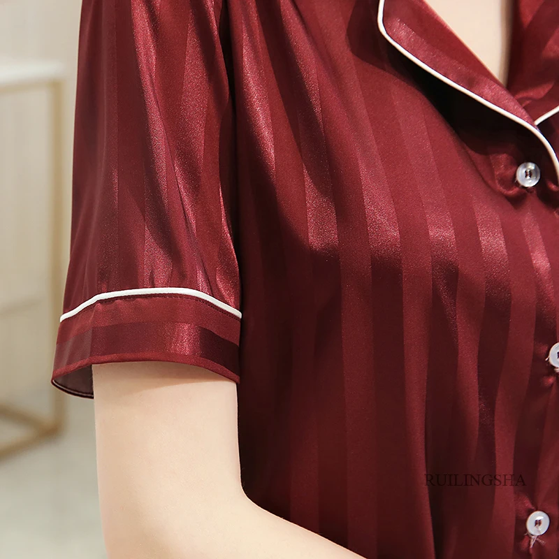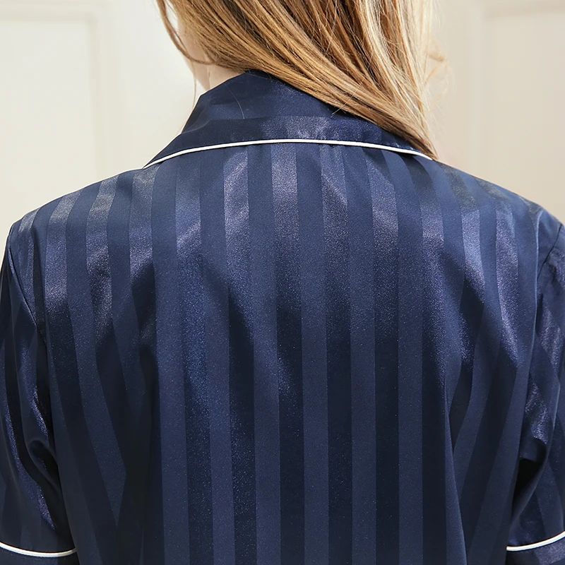 Пижама женская атласная в полоску, пикантный комплект из двух предметов для влюбленных, шелковая пижама в Корейском стиле, пижама с коротким рукавом, темно-синяя, на лето