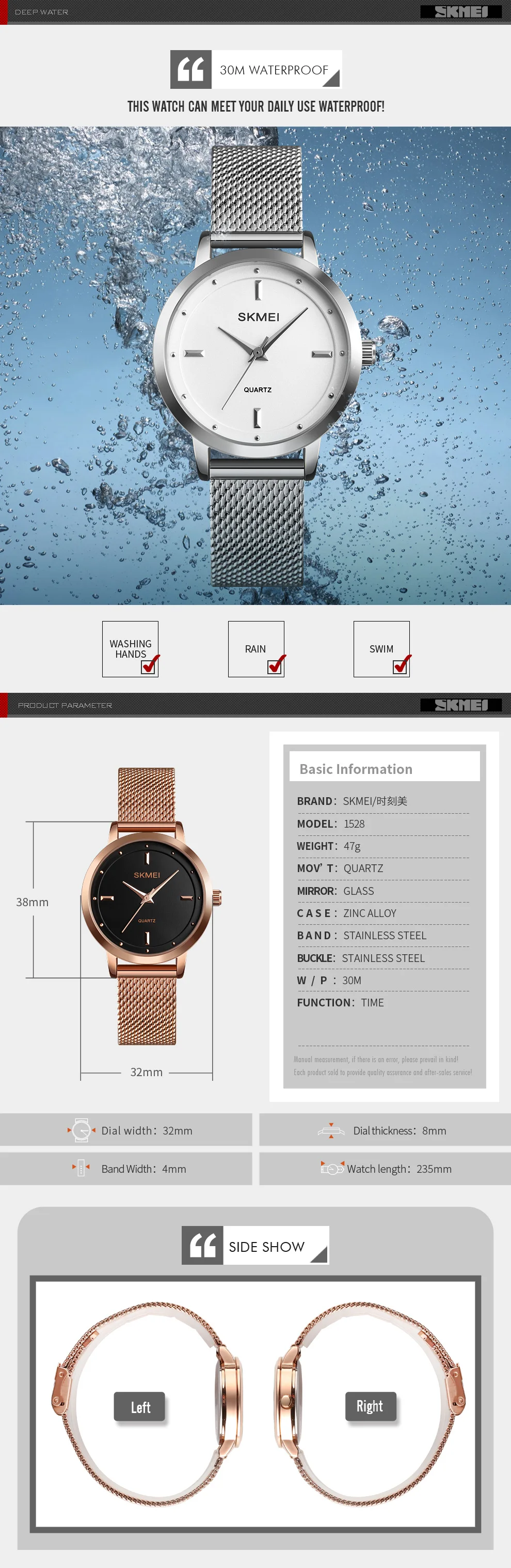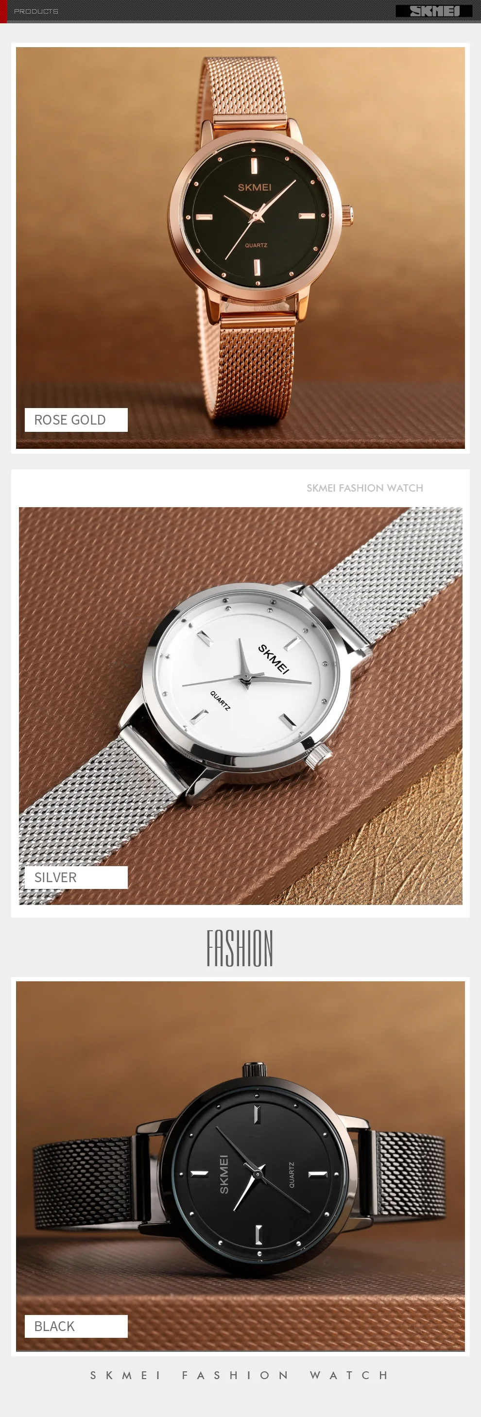 Модные женские часы, кварцевые наручные часы из нержавеющей стали, простой дизайн, женские часы, женские повседневные платья, браслет, лучший бренд SKMEI