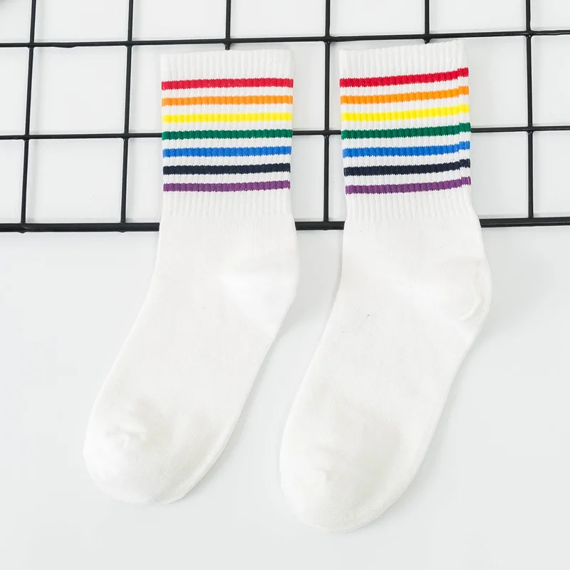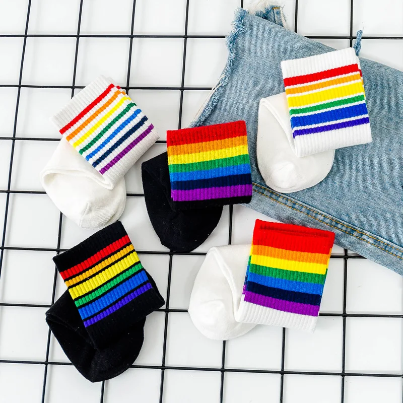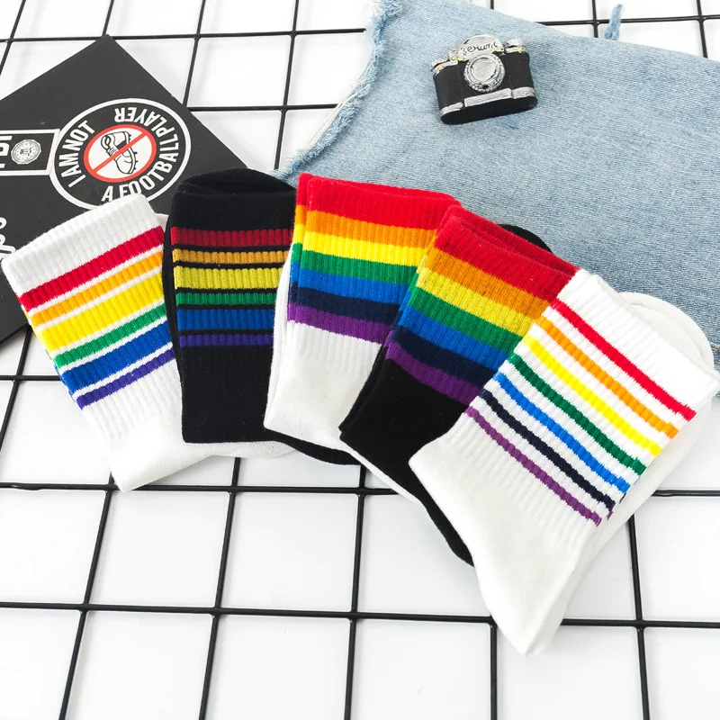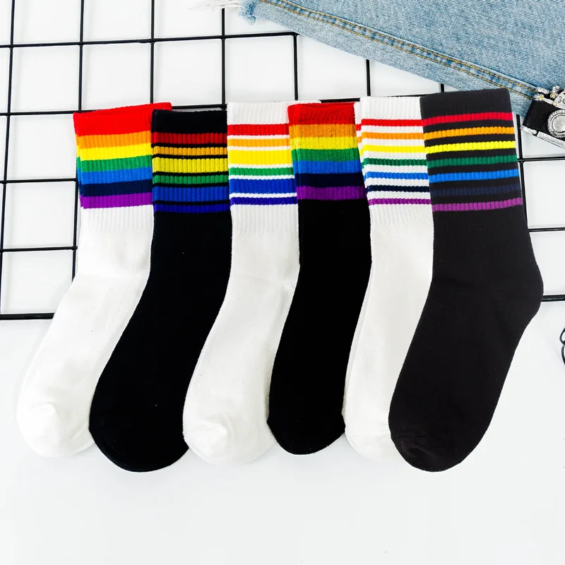Осенне-зимние хлопковые носки женские удобные радужные носки для отдыха женские черные белые с цветными полосками для дам 201