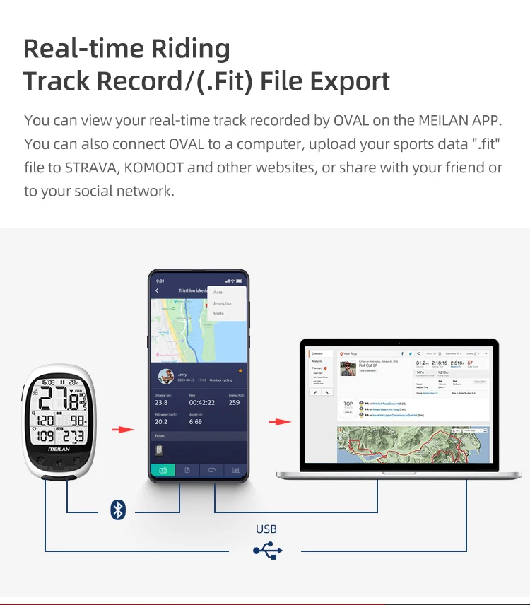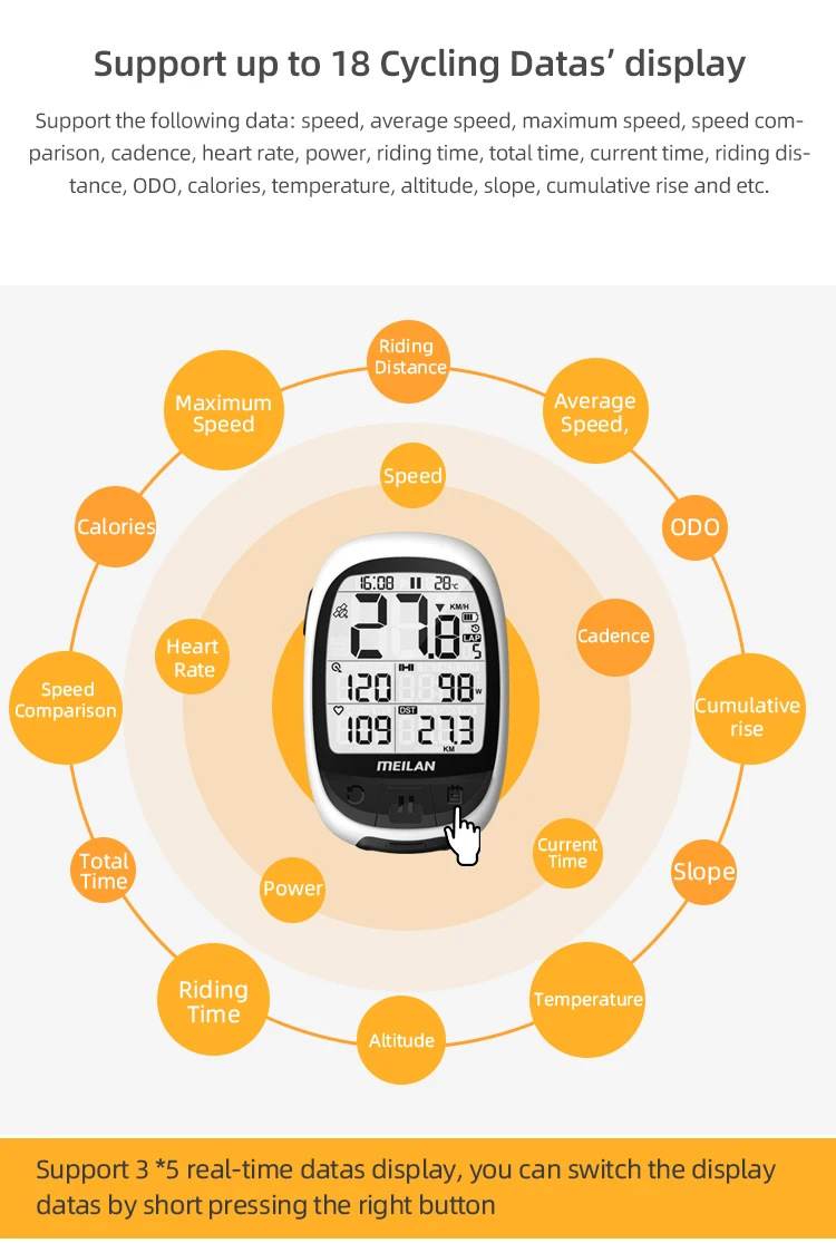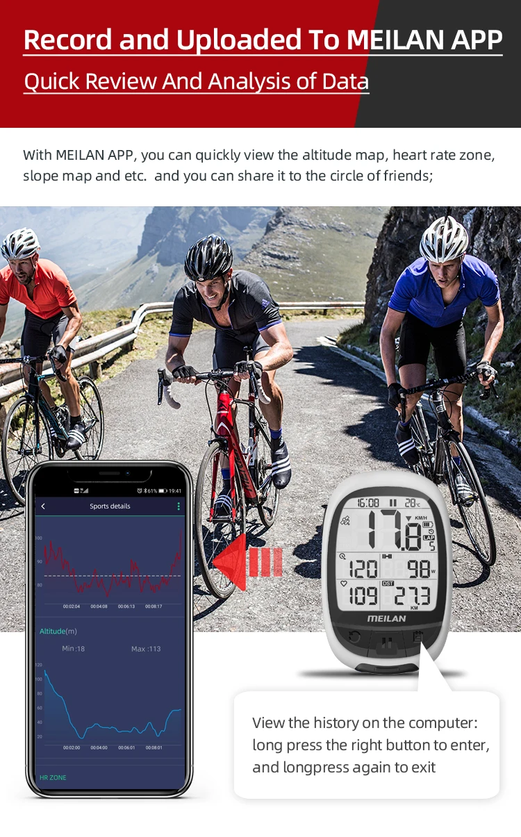 Велосипедный gps-компьютер Bluetooth ANT + велокомпьютер Meilan M2 поддержка подключения к измерителю частоты сердечных сокращений (не входит в комплект)