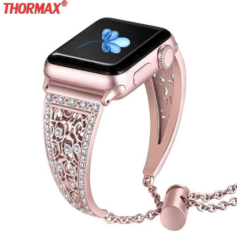 Ремешок Роскошные, со стразами, с украшениями под бриллианты для часов Apple Watch, сменный ремешок, браслет для iwatch 5 Women Lady 38 мм 40 мм