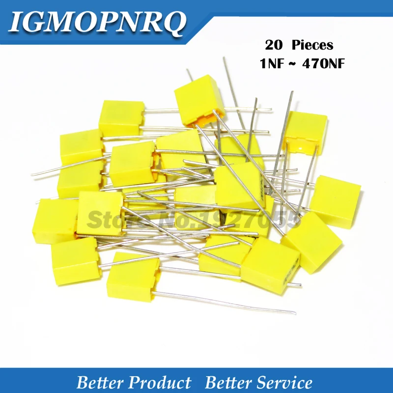 20 шт., встроенная пластиковая пленка, 100 В, 1 нФ 0,47 НФ, 0,1 НФ, НФ, 10 нФ, 47 НФ, 22 НФ, 1 нФ, мкФ, мкФ, корректирующий конденсатор