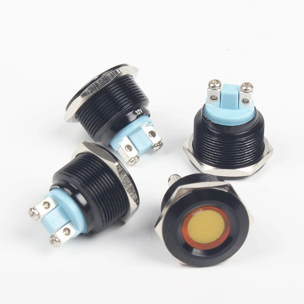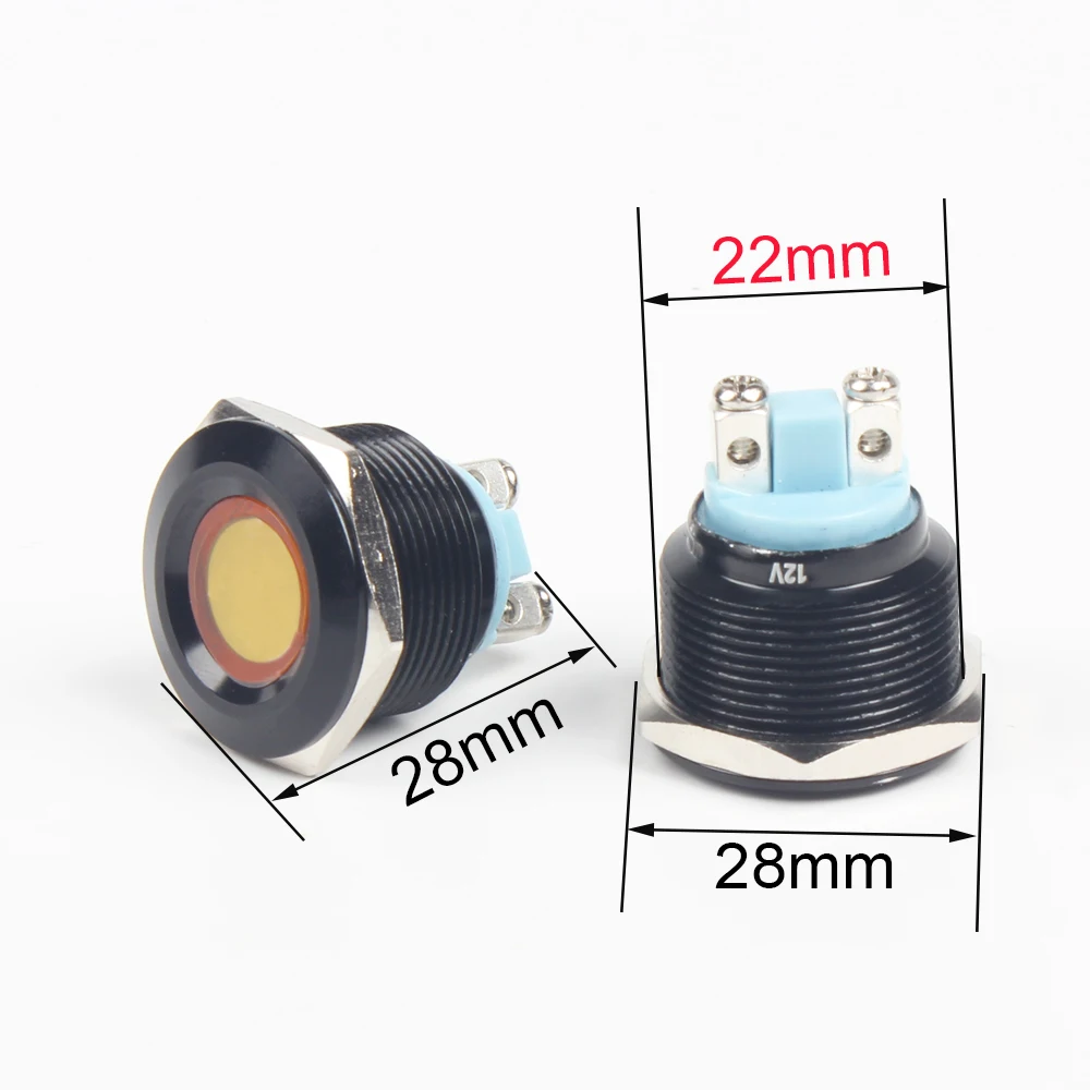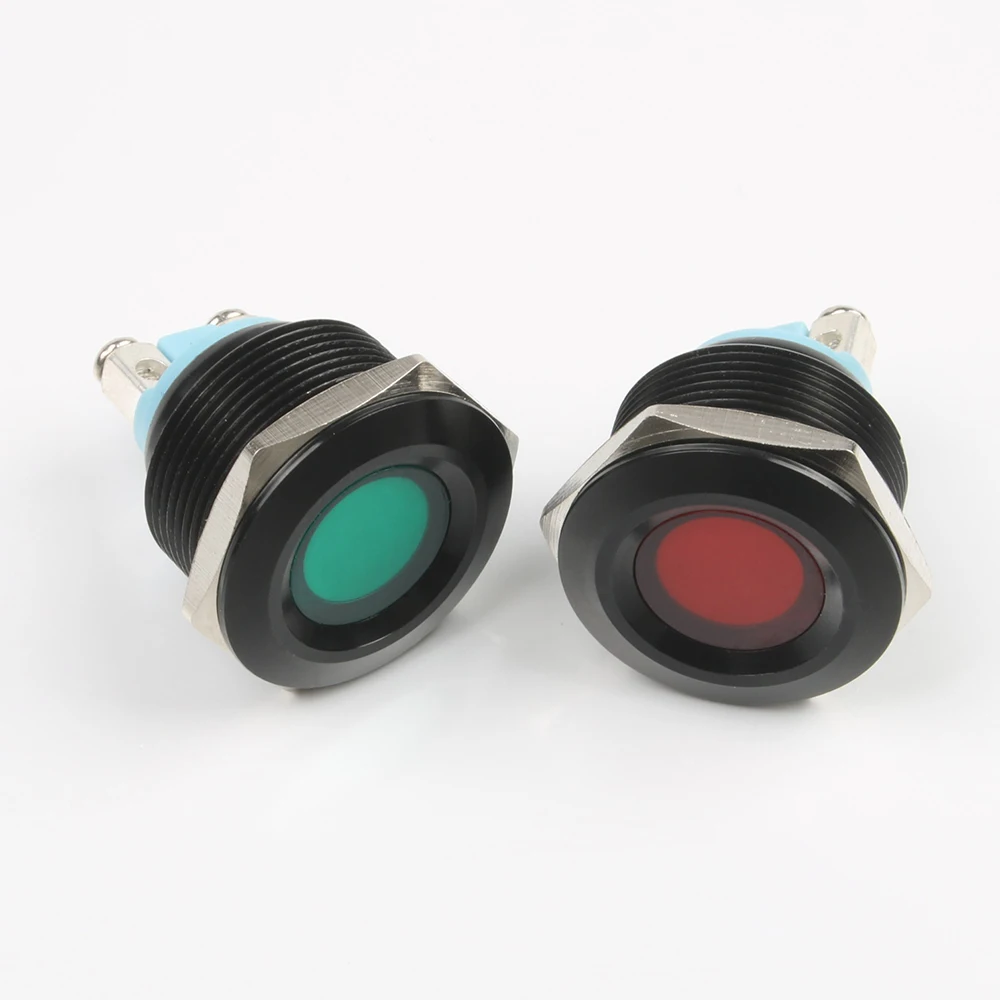 Светодиодная лампа, 22 мм, оксидированная, черная, вогнутая, круглая сигнальная лампа, 3 в, 5 В, 6 в, 12 В, 24 В, 36 В, 110 В, 220 В, винтовая ножка, красный, желтый, синий, белый, зеленый