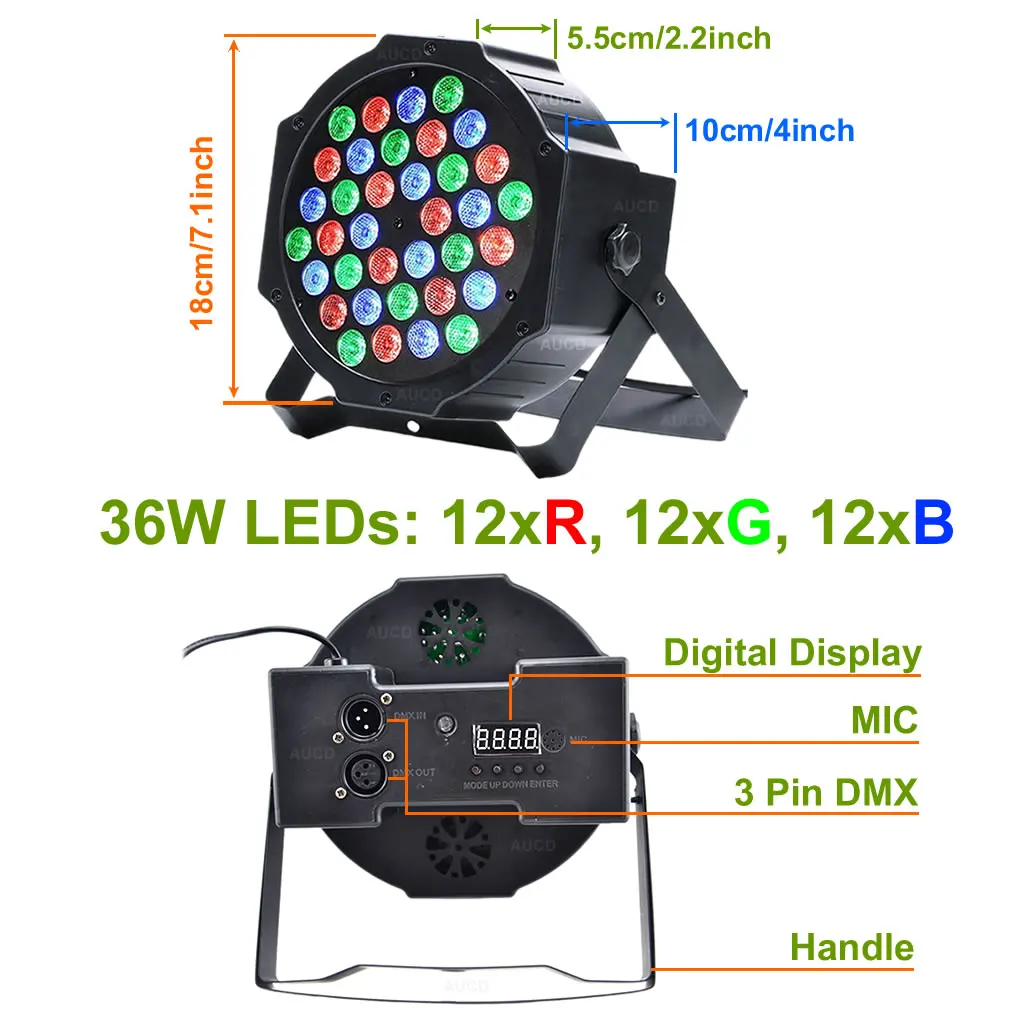Миниатюрная Светодиодная лампа AUCD, 36 Вт, красный, зеленый, синий, прожектор DMX для дискотеки, прожектор для диджея, RGB, для свадьбы, вечеринки, шоу, сценическое освещение, стробоскопическое освещение