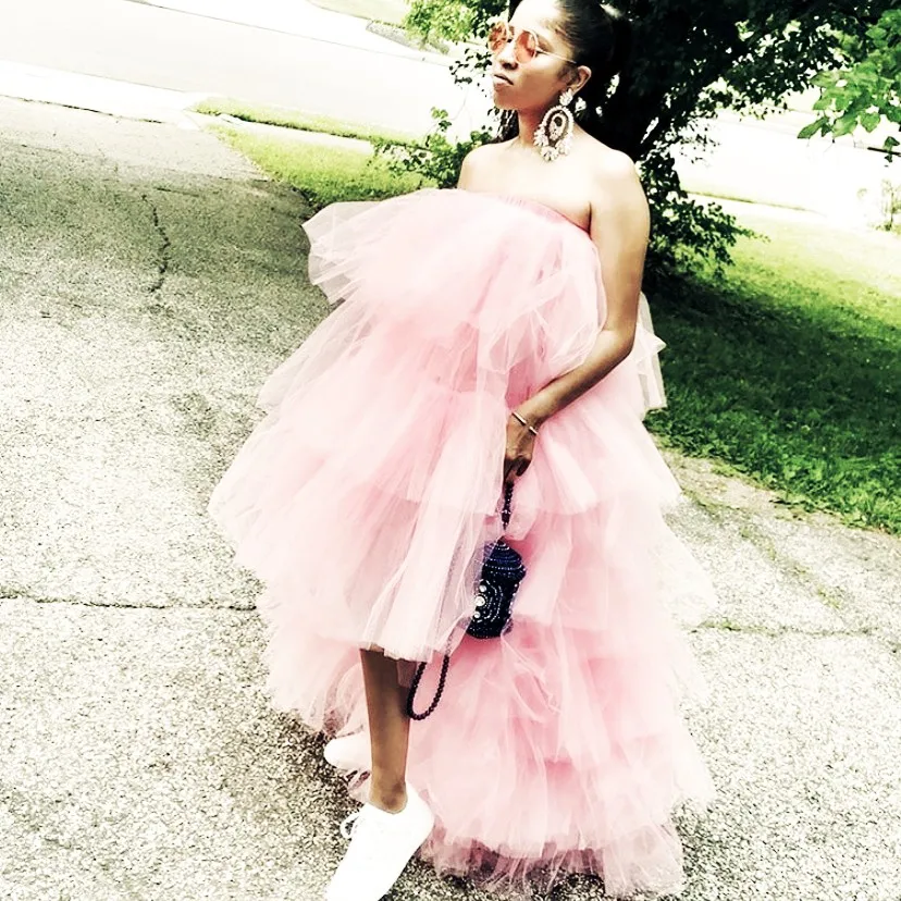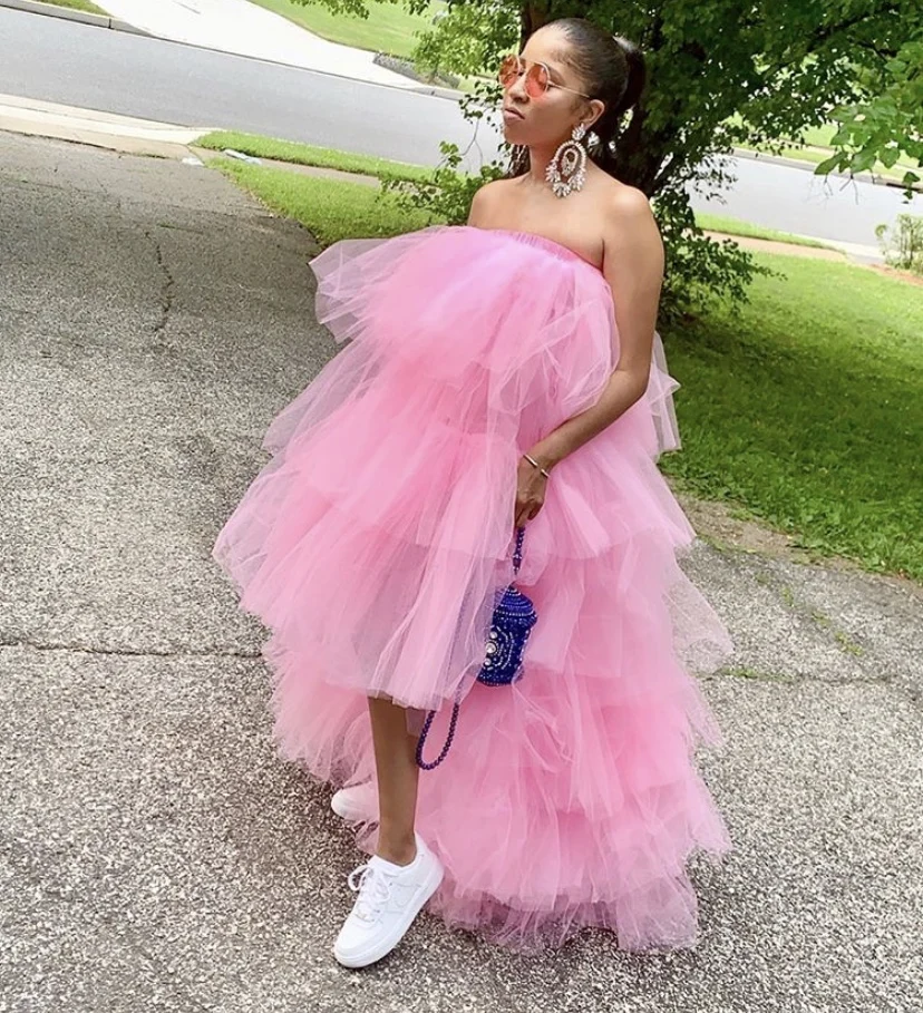 Модная розовая юбка-пачка для малышей с высоким и низким вырезом, 2019, юбка с эластичным поясом и оборками в несколько рядов для женщин, юбка макси из тюля Вечерние