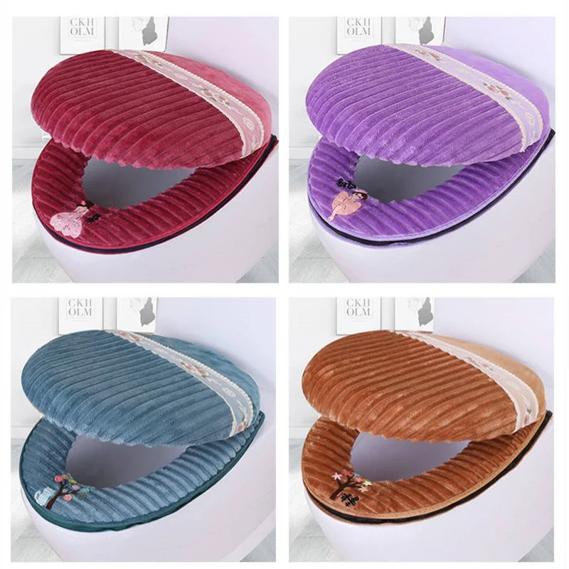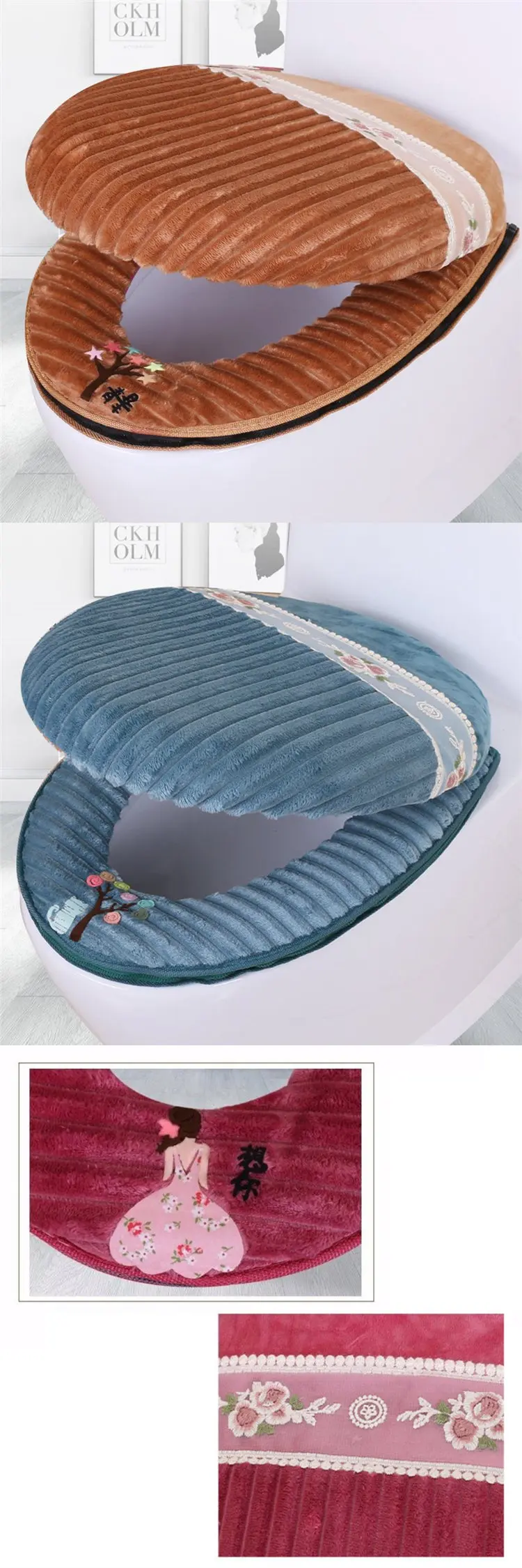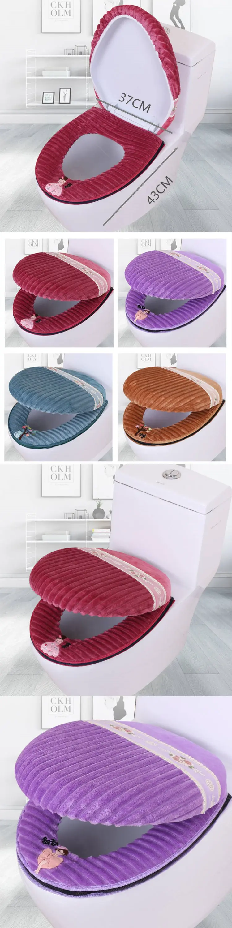 Из мягкого вельвета чехол для унитаза с мультяшным принтом, универсальный моющийся чехол для защиты унитаза, подушка, декор для ванной комнаты