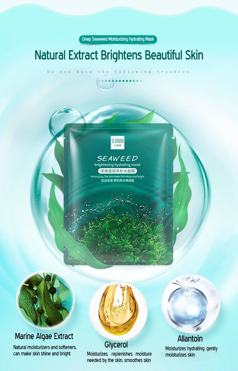 Коллагеновая маска для лица с натуральными водорослями, сужает поры, увлажняет и контролирует жирность