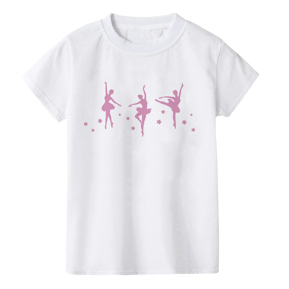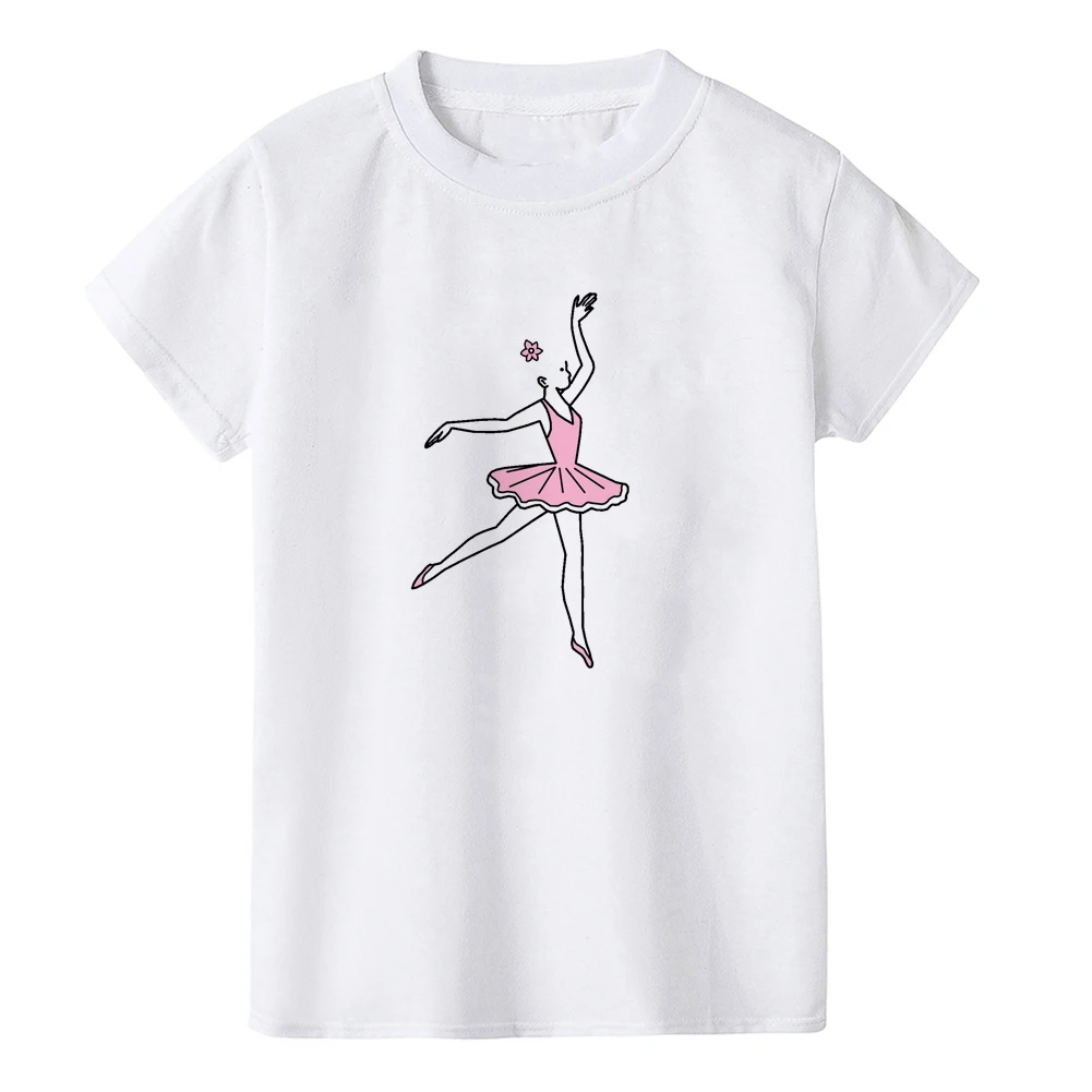 Летняя модная футболка для девочек в стиле Харадзюку Футболка с принтом балетных танцоров Детские Забавные футболки для девочек, топы с короткими рукавами, одежда