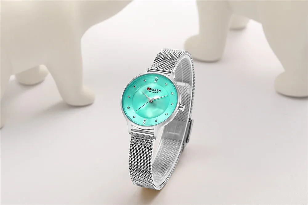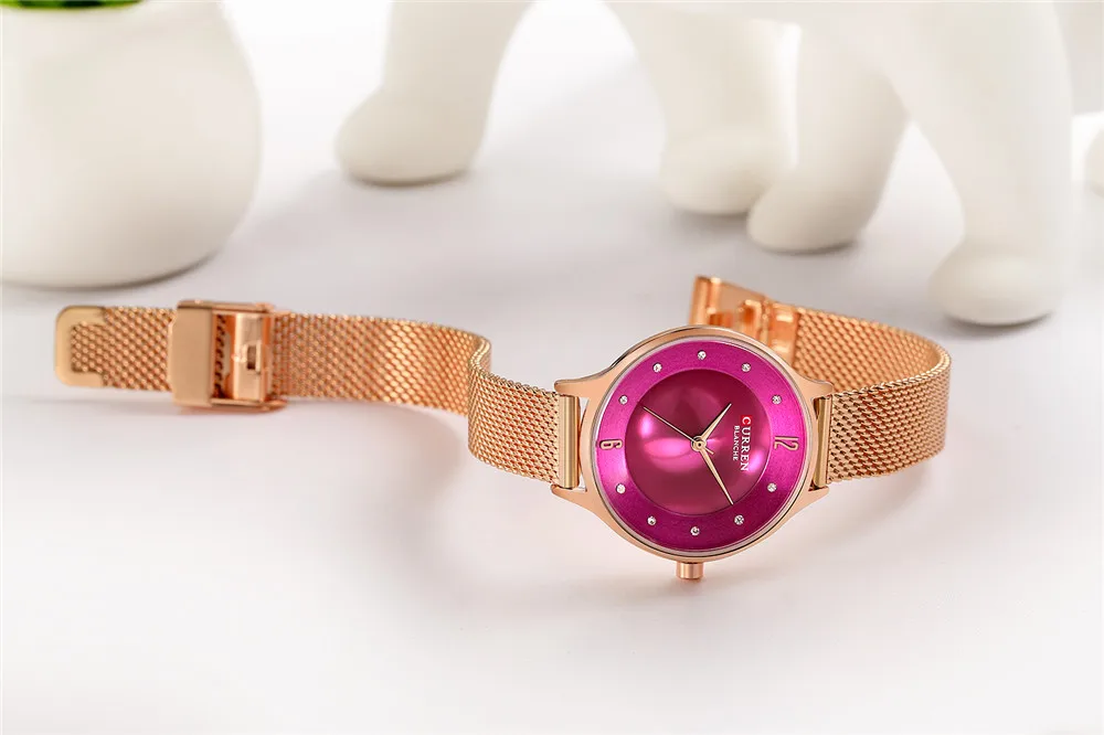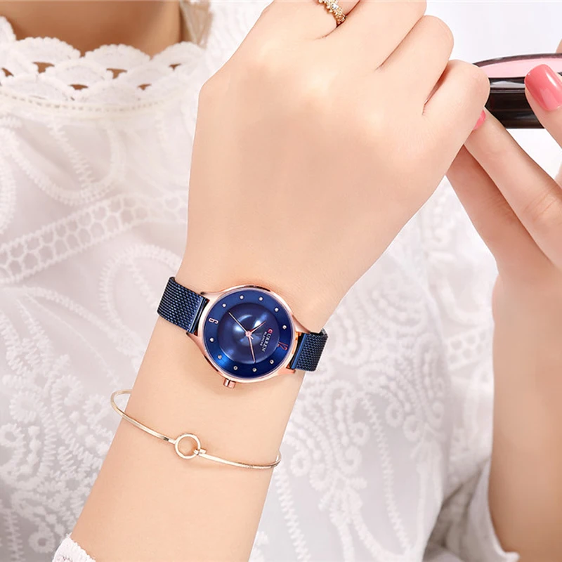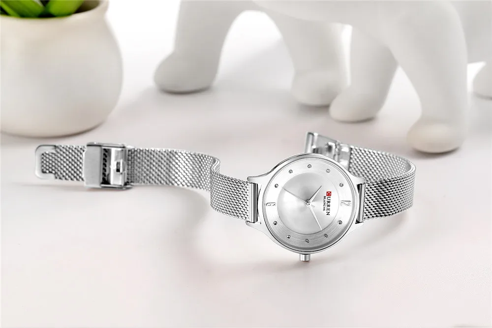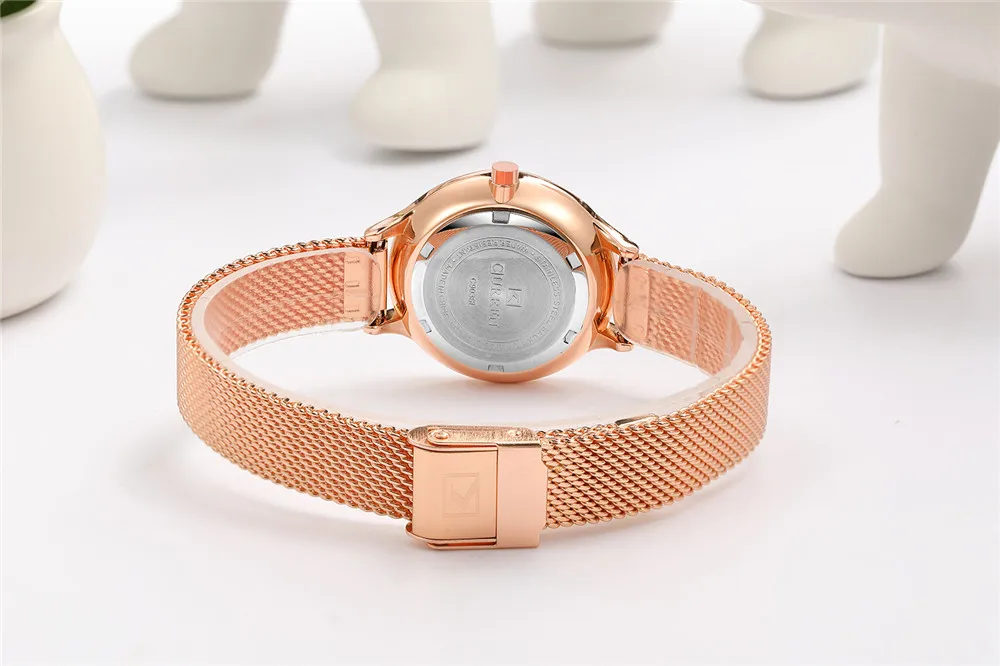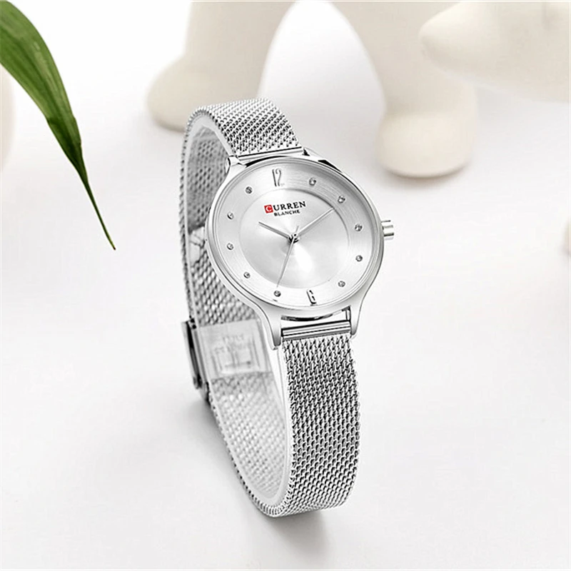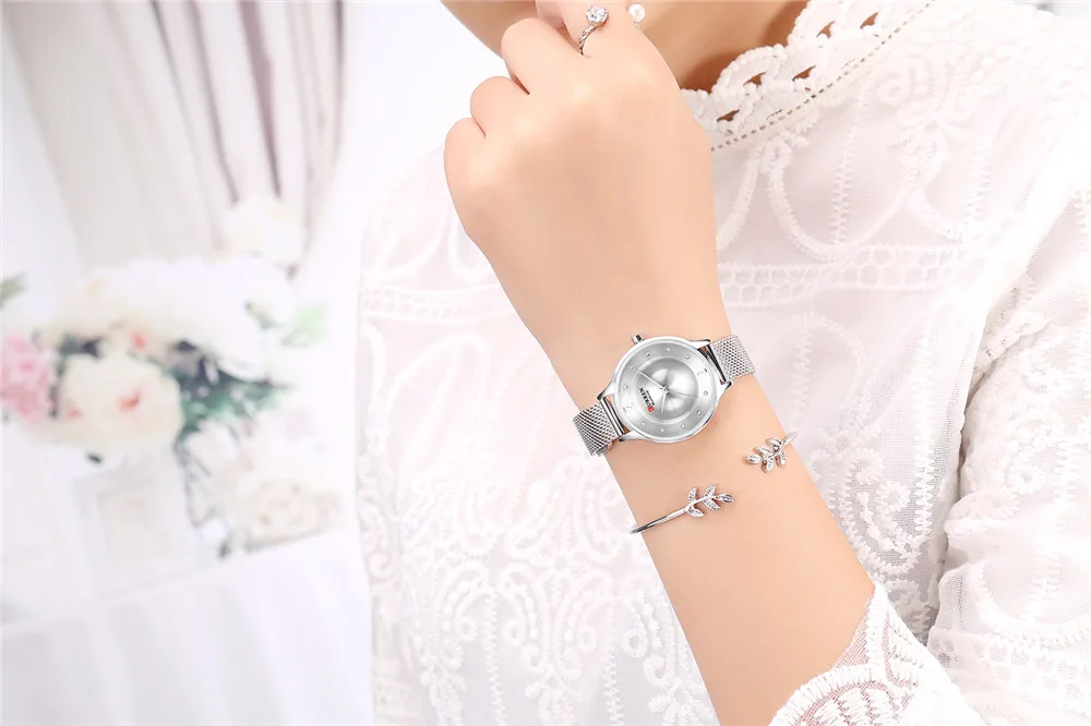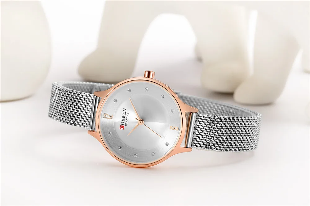 Женские кварцевые часы с сетчатым браслетом из нержавеющей стали