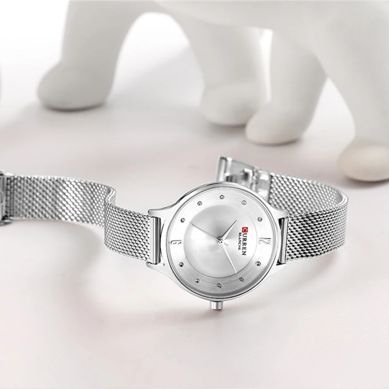 Часы женские кварцевые с сетчатым браслетом из нержавеющей стали, 9036