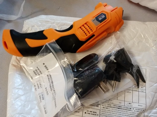 Очень удобен, плюс и он же минус, рука ложится на кнопку пуска, нет блокировки пуска (предохранителя) У меня он завелся еще при распаковке. Спасибо продавцу снял нож.