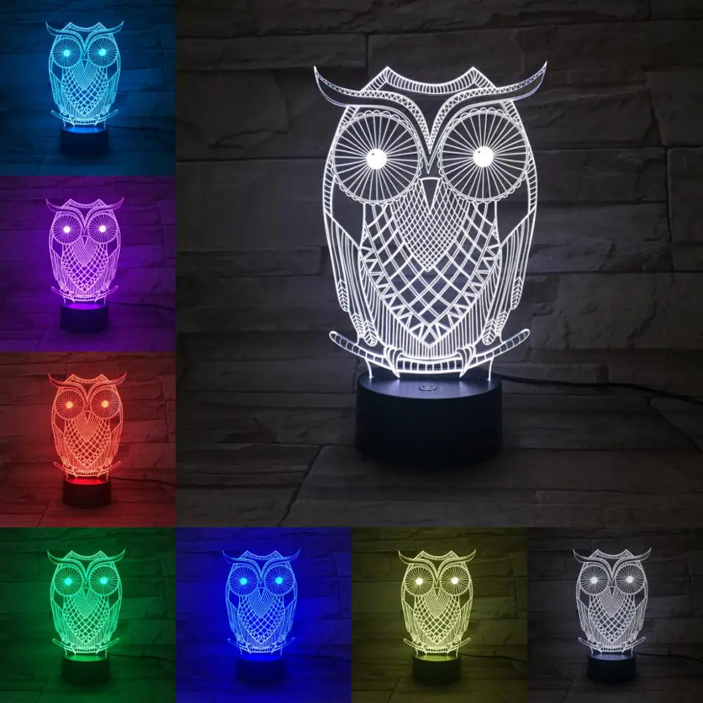 3D LED USB Сова Сенсорный пульт для сна лампа для животных многоцветный Ночник светильник для дома Deocration Luminaria детский подарок на день рождения и праздник