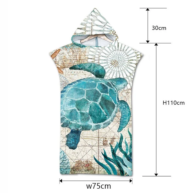 Банное полотенце из микрофибры с принтом черепахи, пляжный Халат с капюшоном, пончо для плавания, пляжный мужской и женский халат для серфинга, пляжная одежда