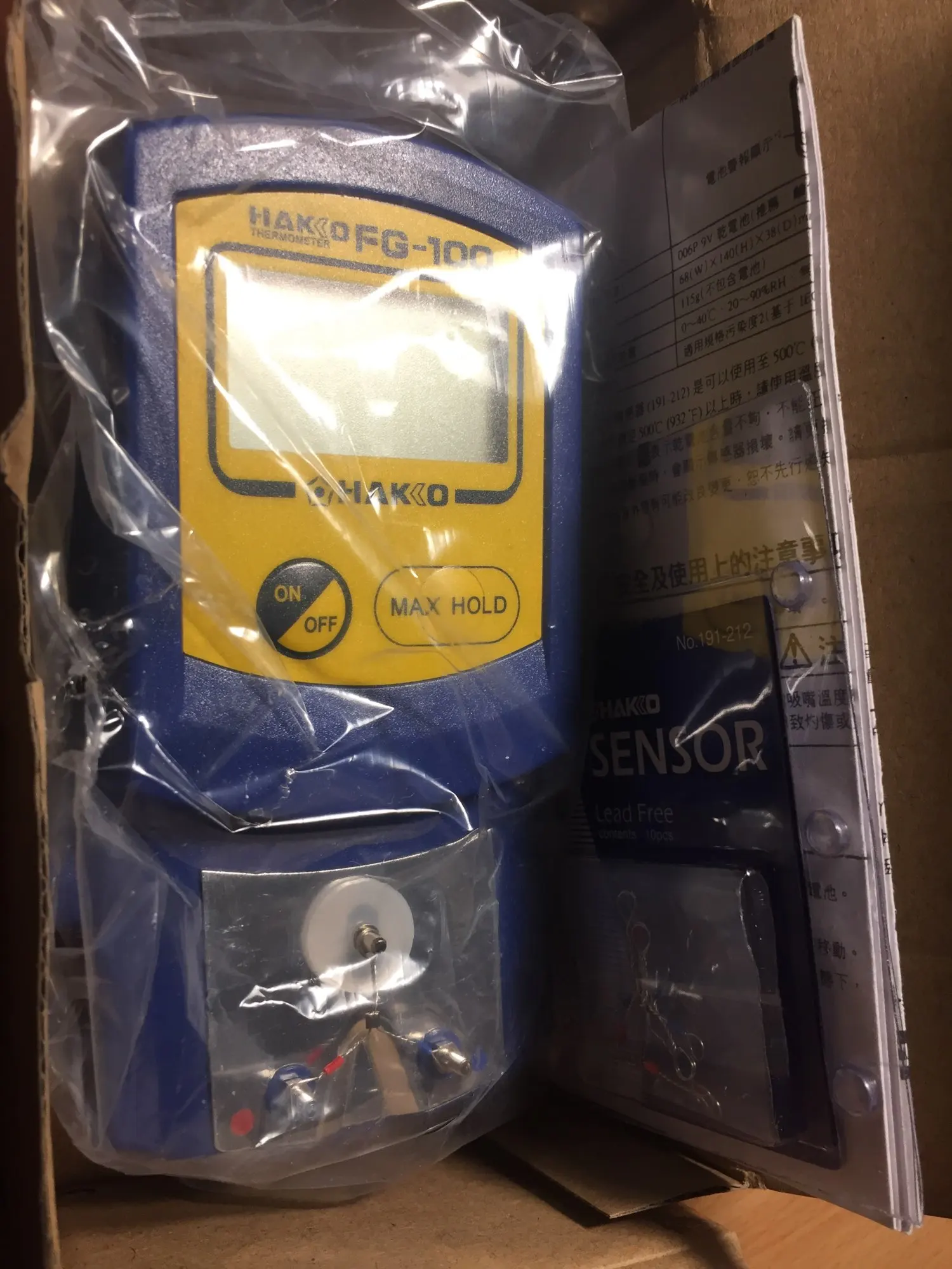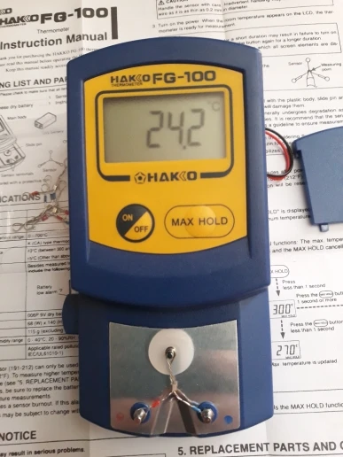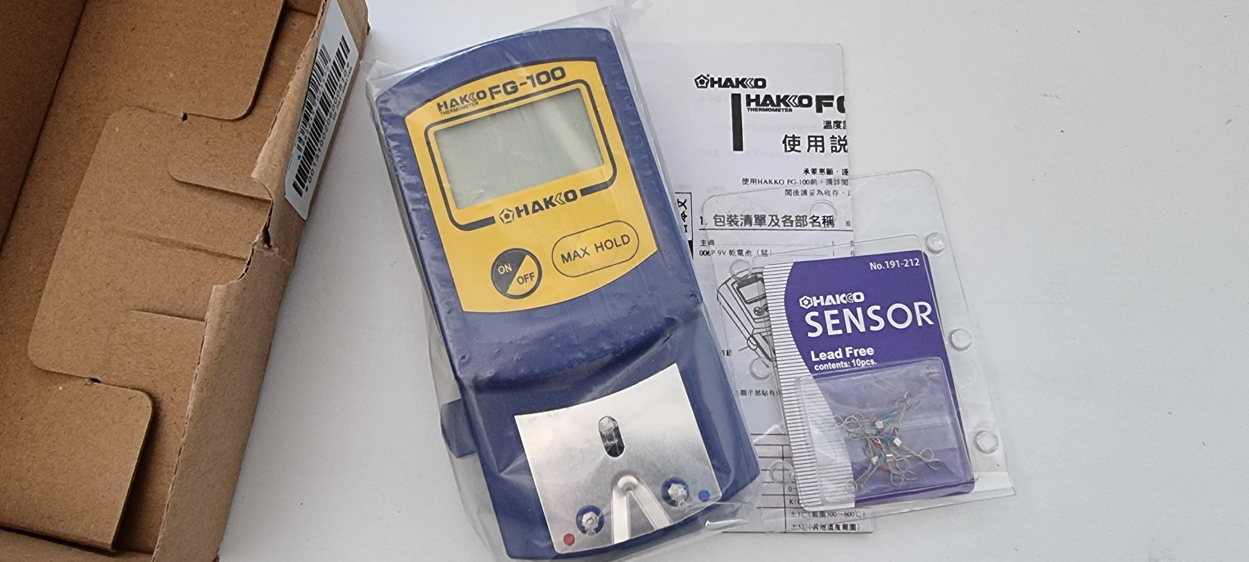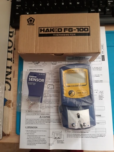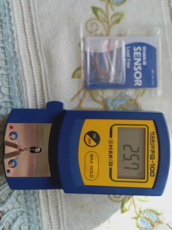 Я купил FG-100 для калибровки наконечников для припоя Ksger T12. Товар был получен в хорошем состоянии. Он был упакован очень хорошо. Я очень рад, что внешний вид и качество сборки устройства являются неожиданными. В комплект не входит аккумулятор 9 В, поэтому мне нужно купить его. Ответ датчика быстрый. Он может сказать мне фактическую температуру наконечников припоя. Я обнаружил, что наконечники на 60 -70 градусов ниже стандартного значения паяльной станции. Теперь я настроил настройки и советы работают гораздо лучше, чем раньше. Я также использую его для проверки температуры плавления паяльного провода. Это очень полезно.