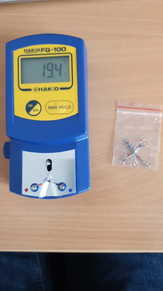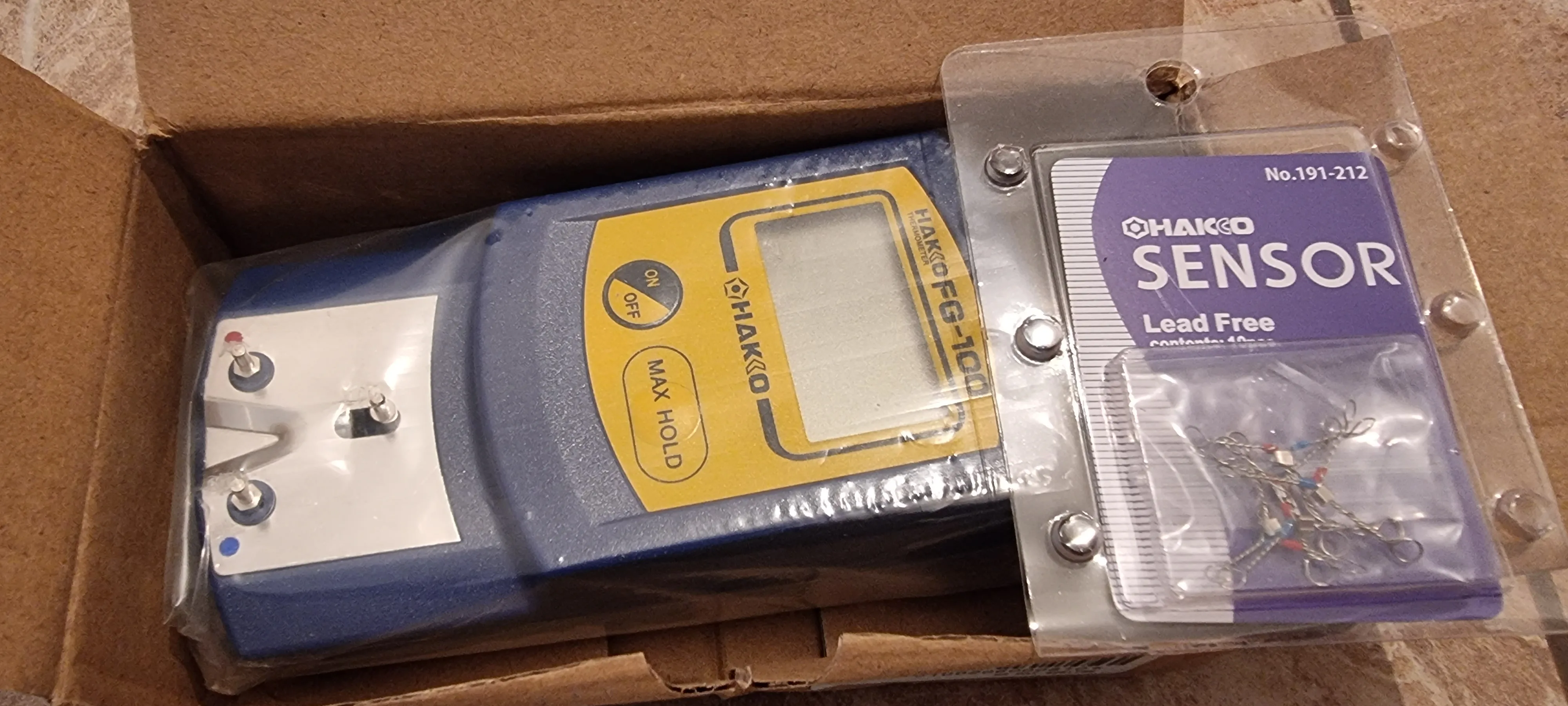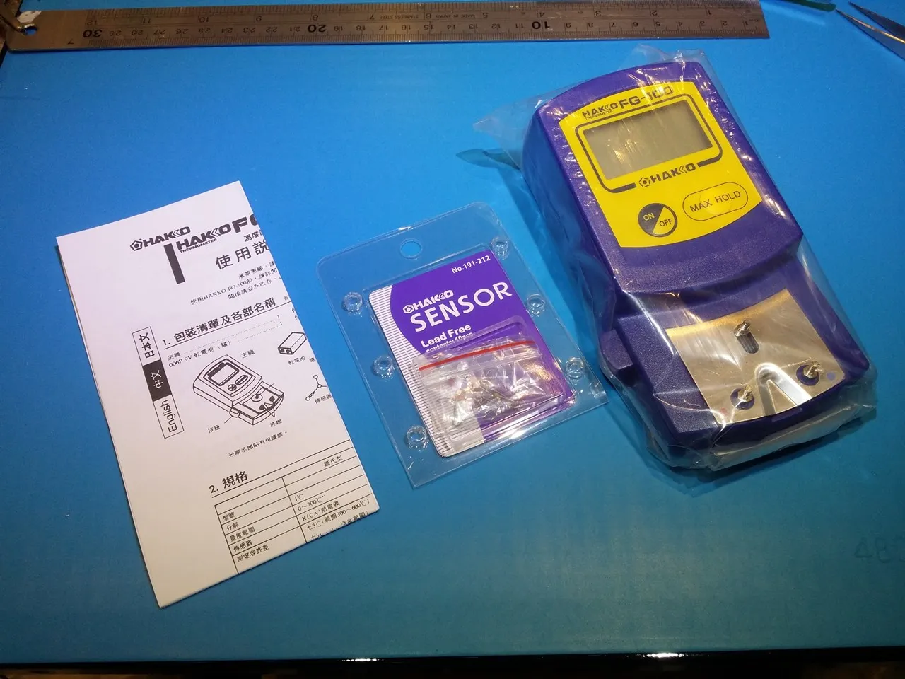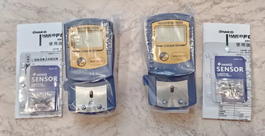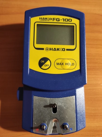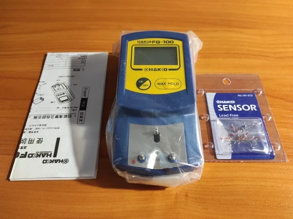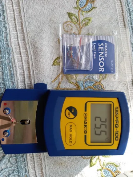 Хороший прибор мне достался с надписью Hakko, пришёл быстро, в комплекте пять датчиков заказал у другого продавца 10 шт за 196₽ разница в показаниях есть датчики из комплекта врут больше в целом очень хороший прибор очень нужен при частой смене жал и работой разными станциями.