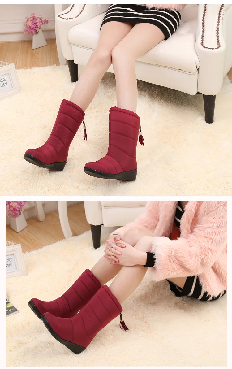 Зимние женские сапоги до середины икры, женские плюшевые сапоги, водонепроницаемая женская зимняя обувь для снега, женская зимняя теплая обувь, женские зимние сапоги