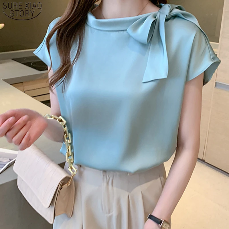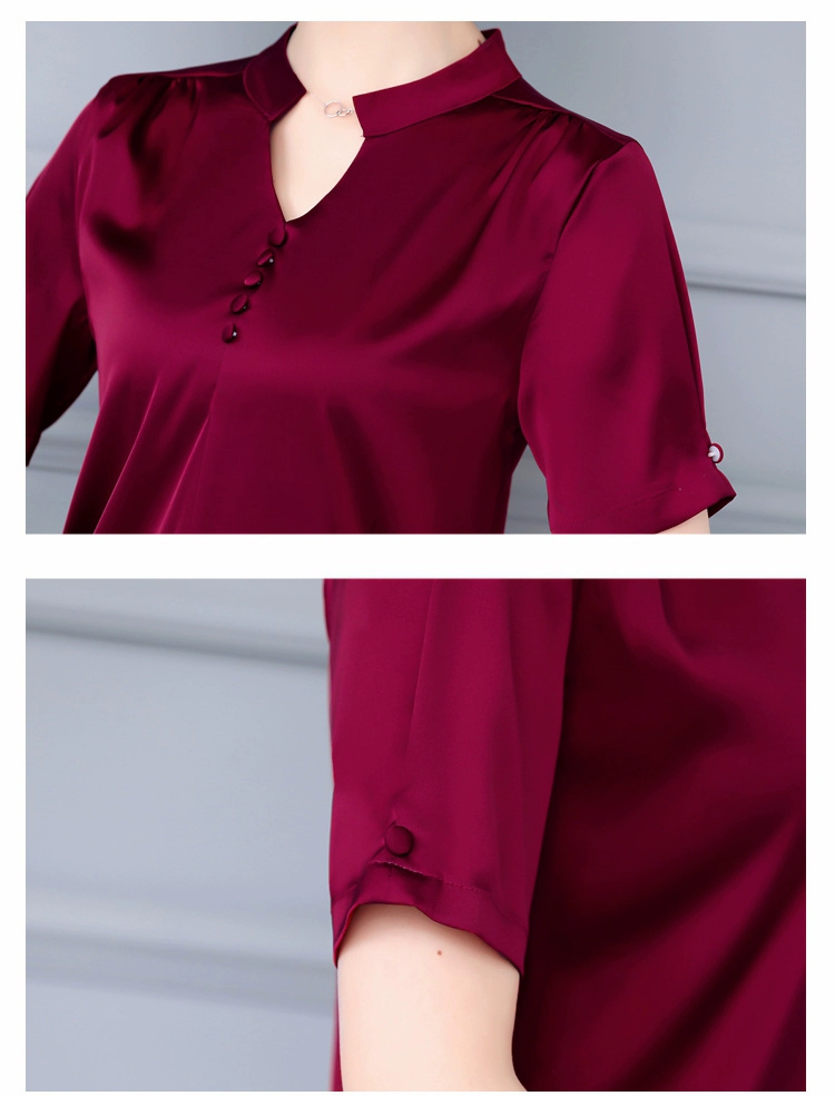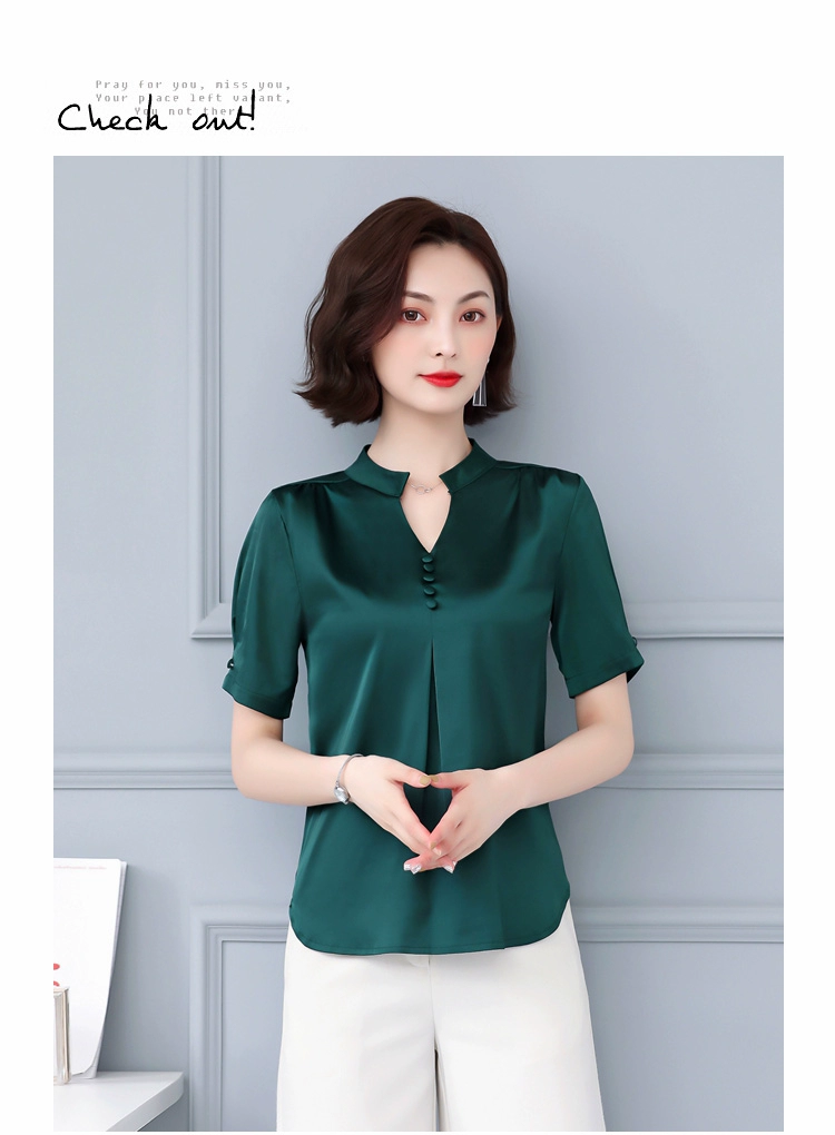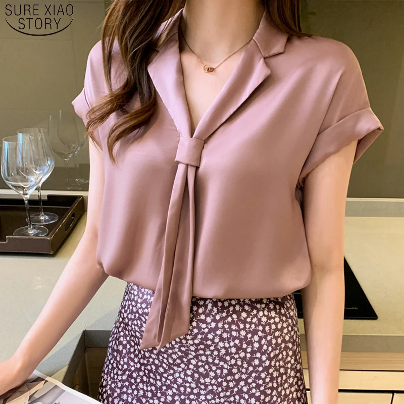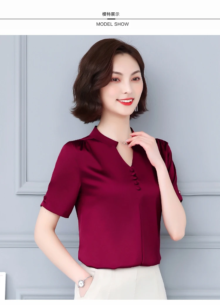 Женская блузка с коротким рукавом, повседневная, на пуговицах, с V-образным вырезом, лето 2021, 5379, 50