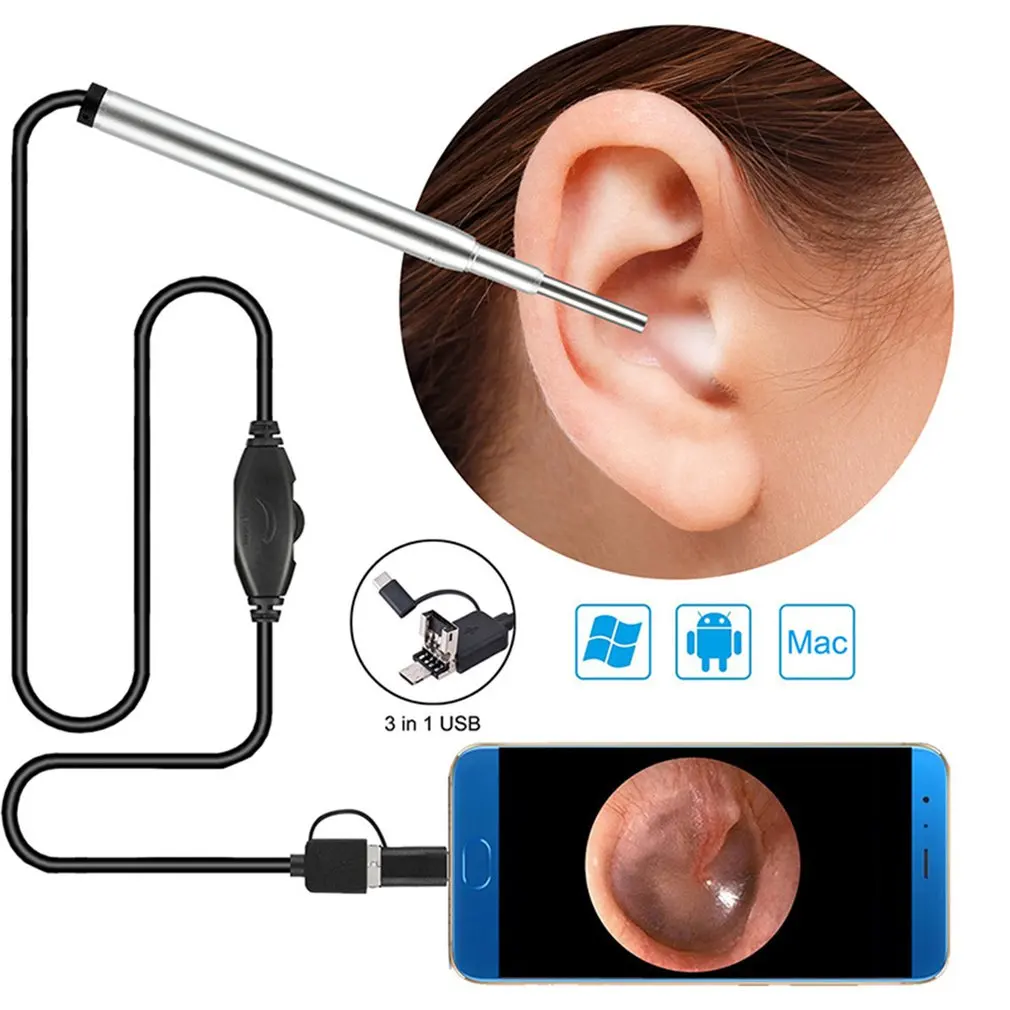 Эндоскопическая камера для чистки ушей 3 в 1, 1,0 мм, 720p, HD, 3,9 МП, Бороскоп, отоскоп, Инспекционная камера, визуальный инструмент для Android