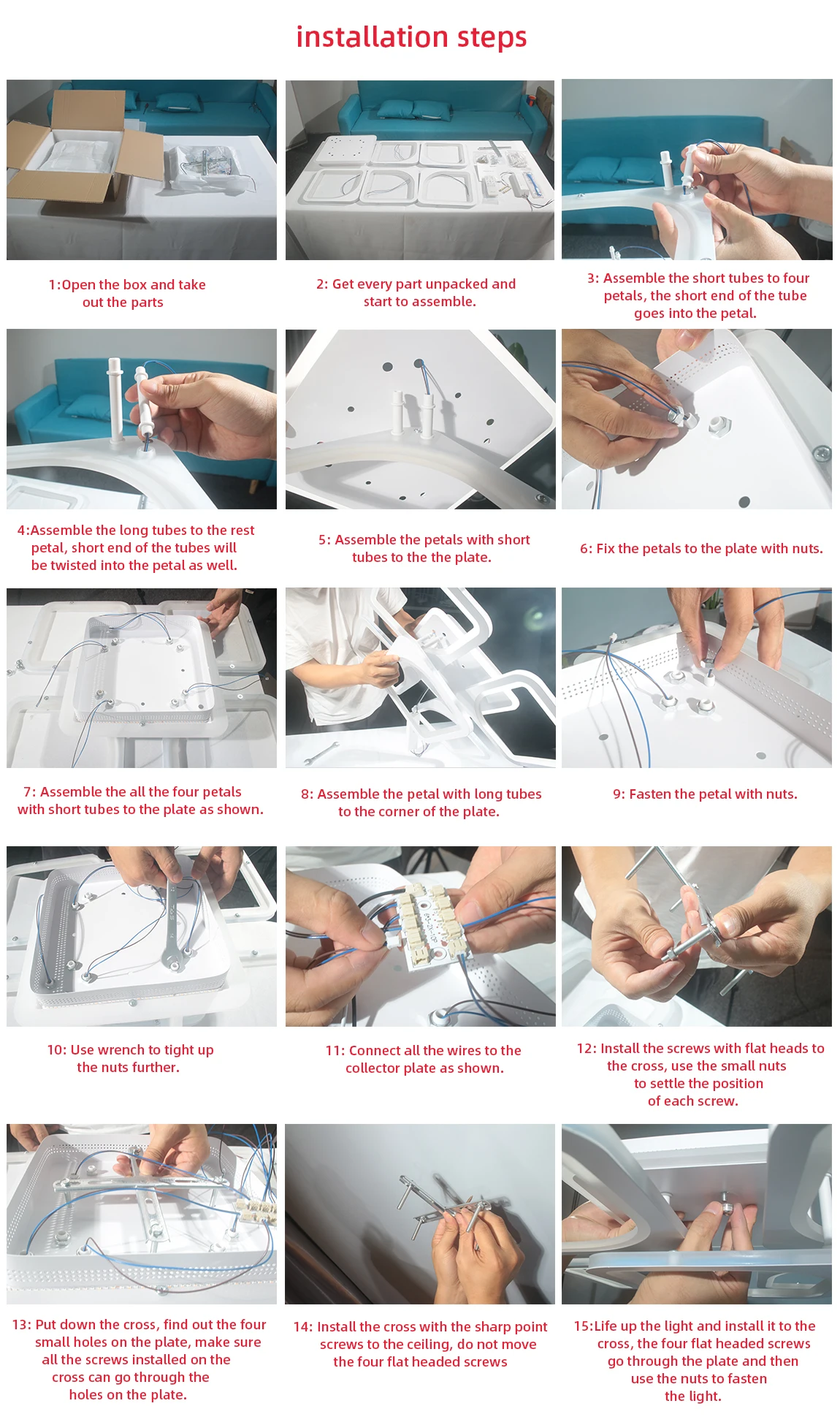Люстра дошла относительно быстро до Ставропольского края (3 недели). Собрать ее особой трудности не составило, так как есть видосы на ютубе. Светит ярко, даже лучше, чем ожидали. В комплекте маленький USB светильник. Единственный недостаток - небольшая деформация пластмассового корпуса на стыках, поэтому в некоторых местах видно светодиодную ленту, но не критично. В целом доволен!