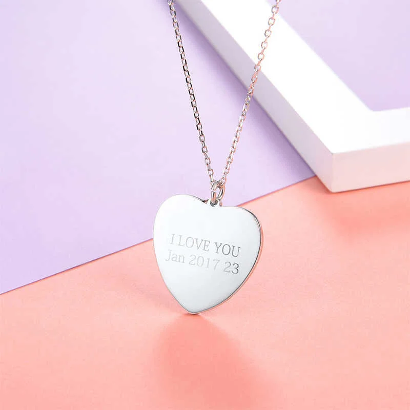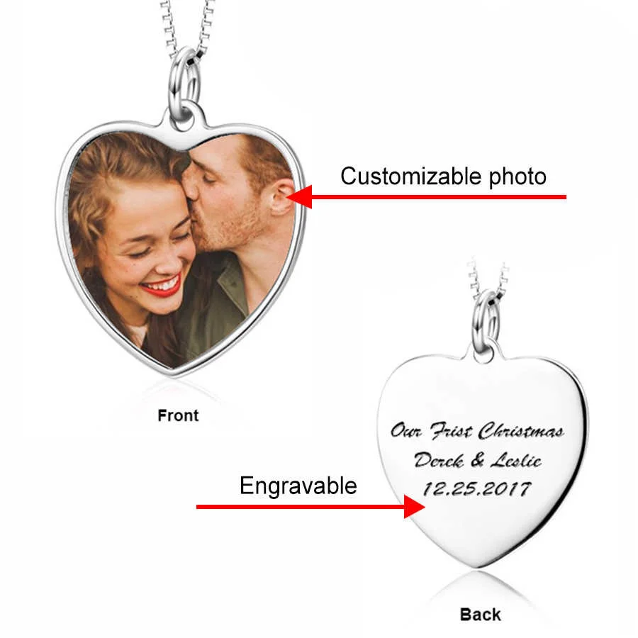 XiaoJing Персонализированные 925 пробы Щепка гравированные сердце ожерелье с фото ювелирные изделия дать Семья памятный подарок на День Благодарения