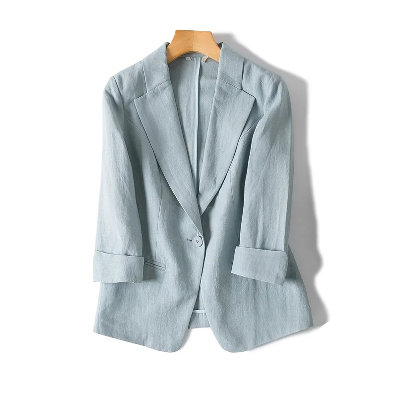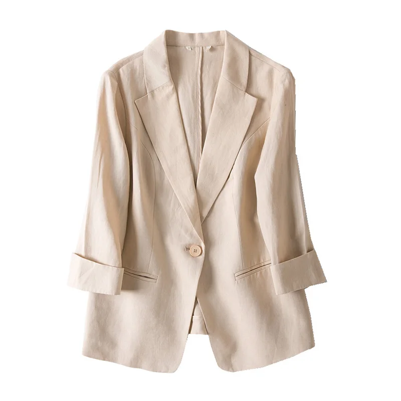 Женские льняные блейзеры, однотонные, с рукавом 34, на одной пуговице, офисный Женский блейзер, новинка 2022, Осень-зима, верхняя одежда