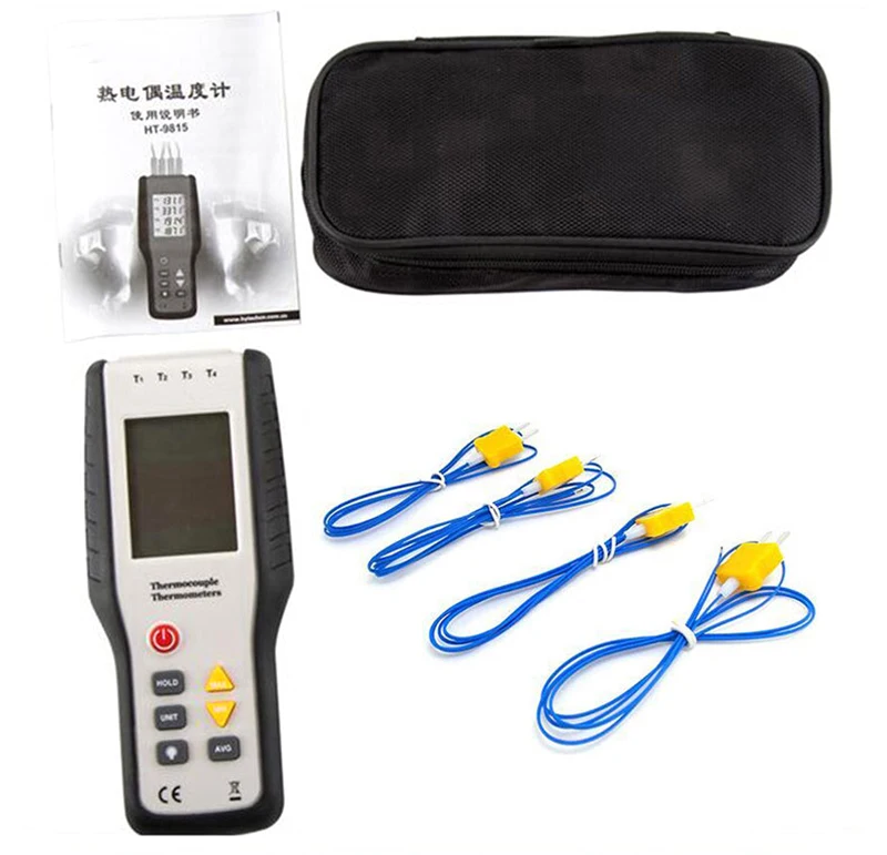HT-9815 цифровой термометр типа K, 4-канальный промышленный датчик температуры, датчик термопары-200C--1372C