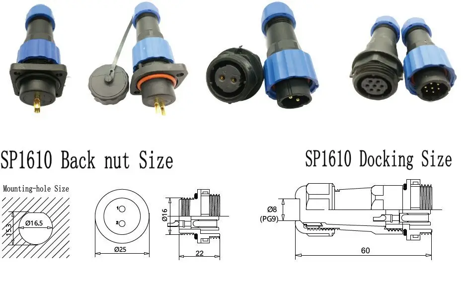 Водонепроницаемый разъем SP1610 IP68 Кабельный разъем штекер и гнездо SP16 2-контактный 3-контактный 4-контактный 5-контактный 6-контактный 7-контактный 9-контактный