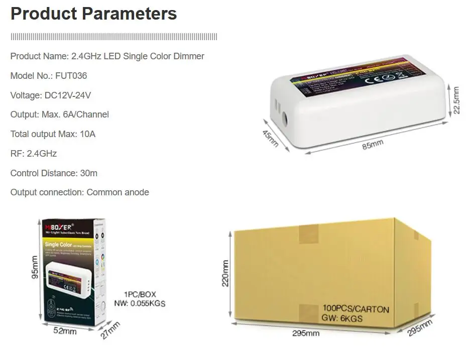 Беспроводной пульт дистанционного управления MiBoxer, 2,4 ГГц, Wi-Fi, для одноцветной светодиодной ленты