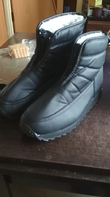 на 41,5 рус. взял 44 в надежде на теплый носок и ещё одну стельку но пролетел просто с теплым носком уже впритык. продавец обманул прислал с замком спереди хотя когда я заказывал замки были сбоку с этими я не взял бы. качество как и все китайское - и так сойдёт где-то недоклеено где-то переклеено сделано небрежно. подошва жесткая наверное будет скользить хотя похожа на резиновую