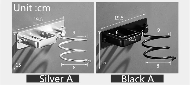 Настенный держатель для фена для ванной комнаты, алюминий Подставка для выпрямителя волос, черный