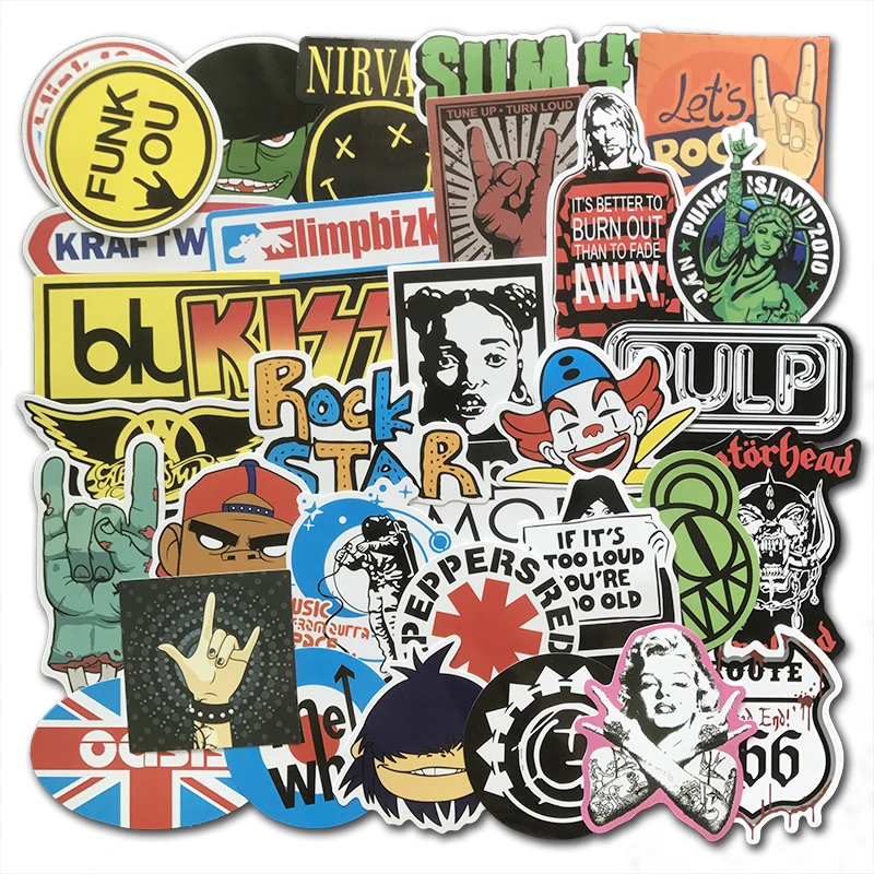 Наклейки рок 100 шт.лот музыкальные ретро-группы граффити JDM наклейки сделай сам для гитары мотоцикла ноутбука багажа скейтборда автомобиля наклейки Bomb
