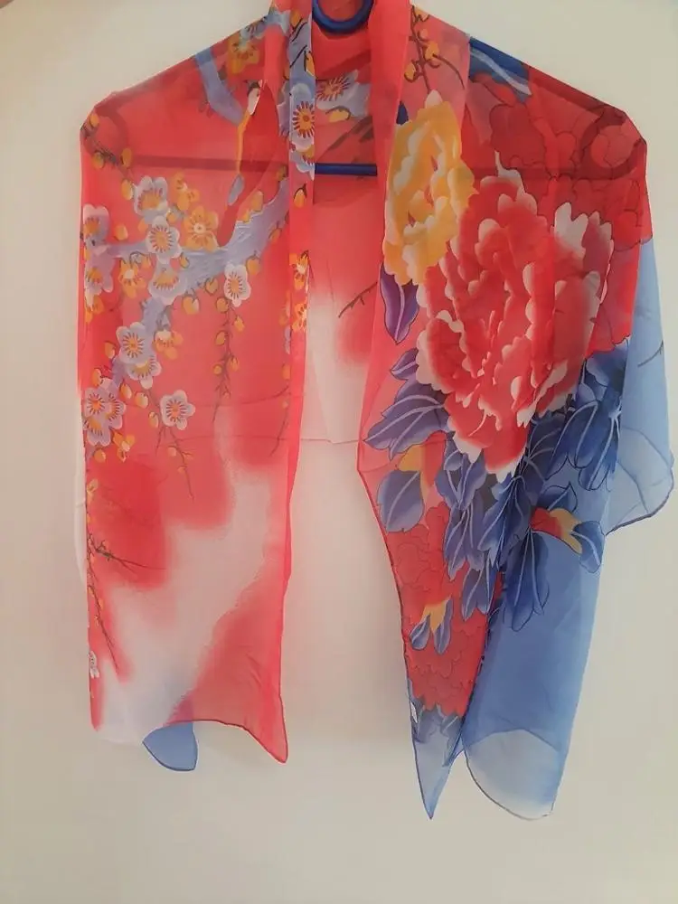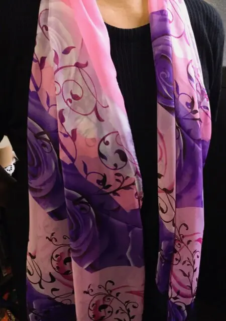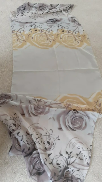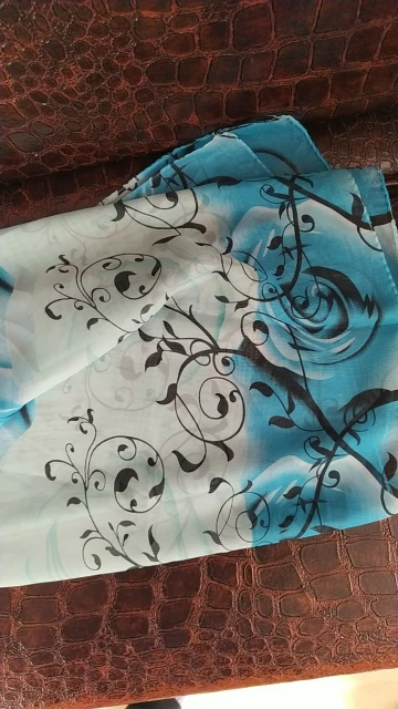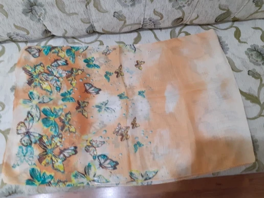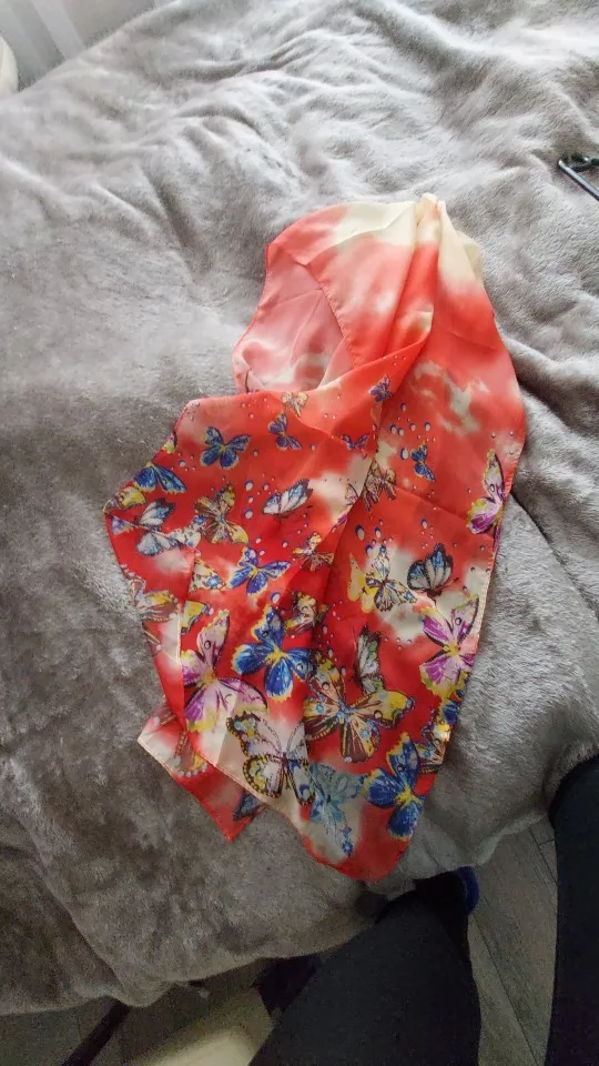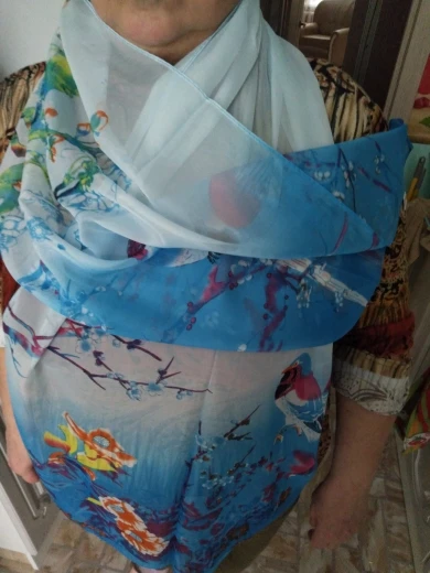 Очень хороший шарфик. Ткань шелковистая, нежная. Расцветка и размер соответствуют. Спасибо производителю и продавцу. Всех благ вам!