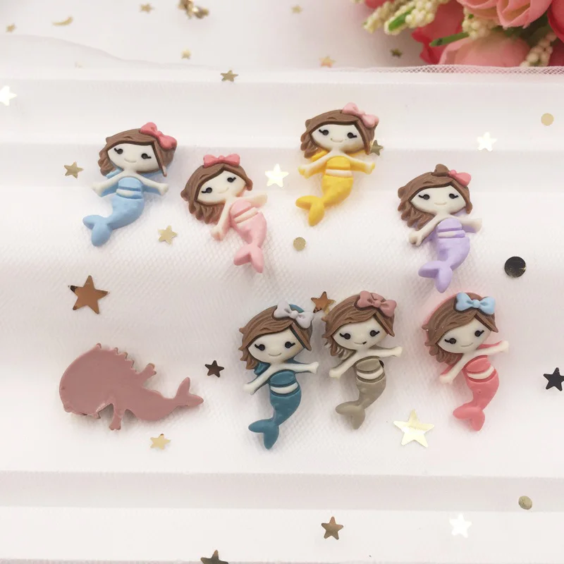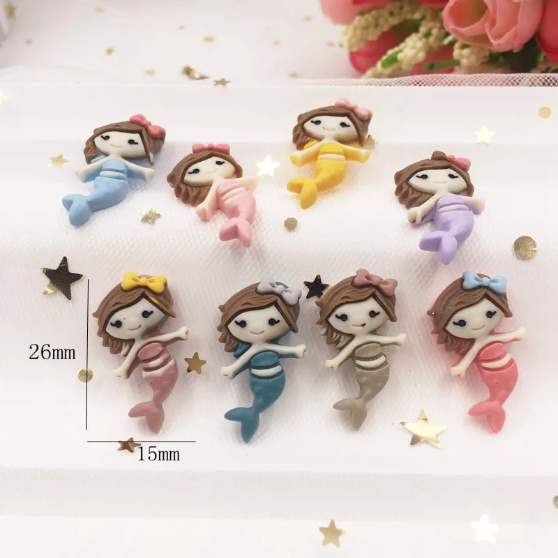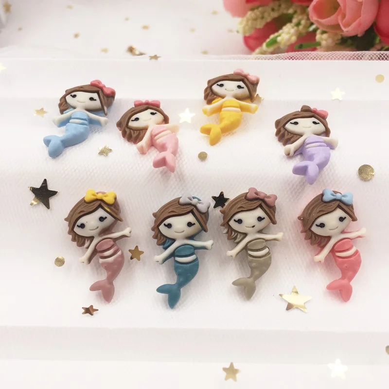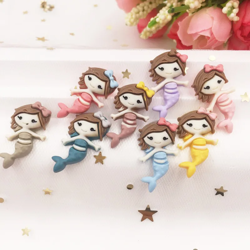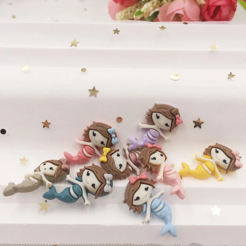 Ручная роспись смолы микс каваи красочные крутые Русалка Flatback Камень Кабошон 12 шт скрапбук DIY Декор дома фигурка ремесла