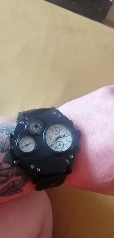 Часы Oulm Мужские кварцевые с компасом, с двумя часовыми поясами