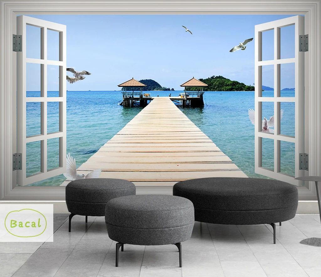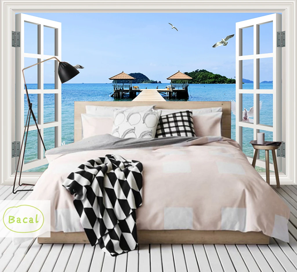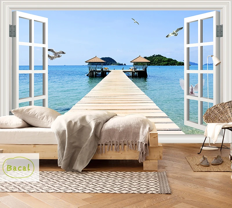 3D фотообои Bacal на заказ, балкон, песочное море, снаружи, гостиная, спальня, ТВ, фон, настенная живопись, 5D Декор