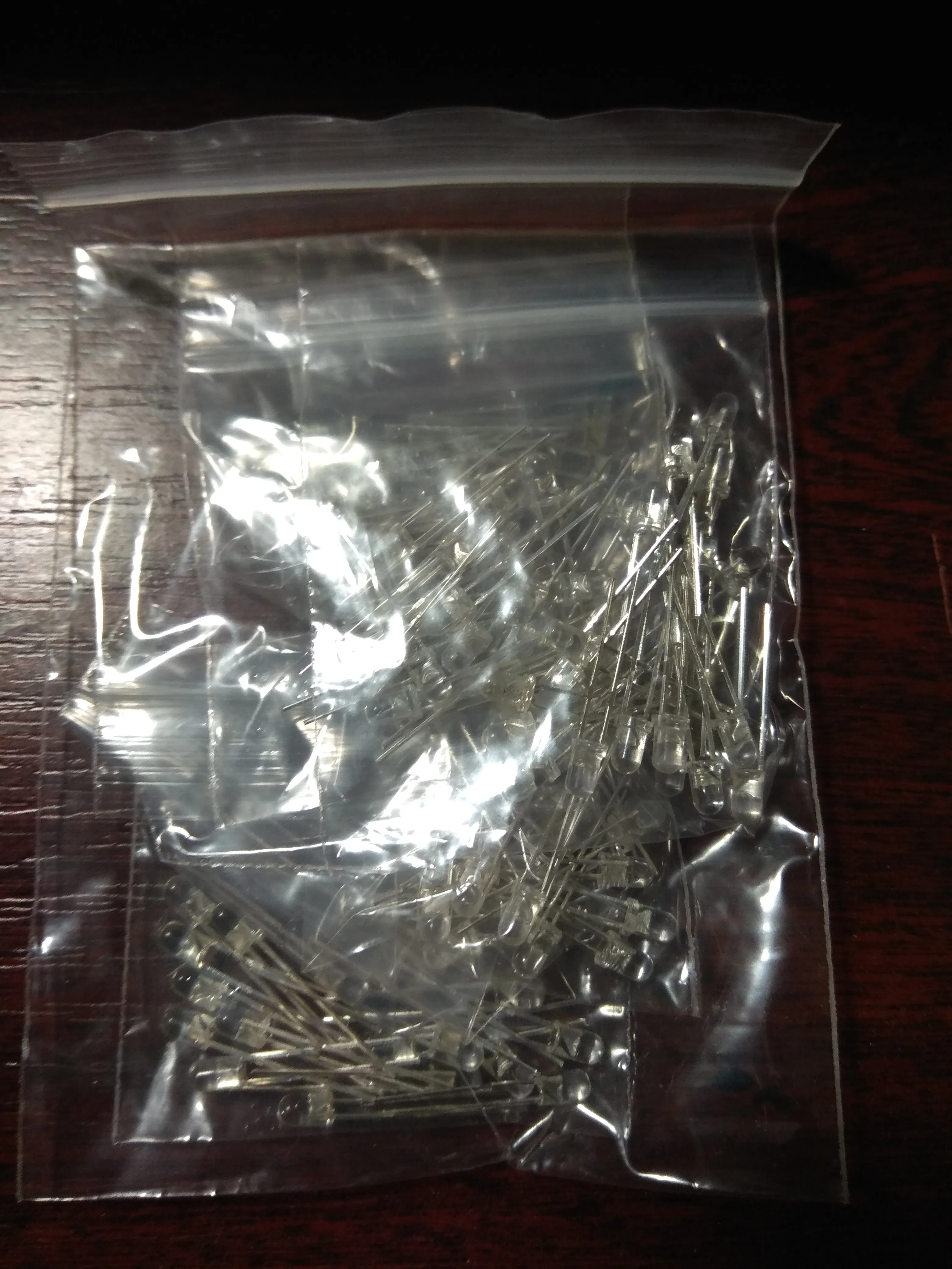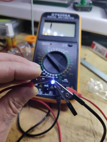 Получил товар, положили в почтовый ящик. Светодиоды работают все, всё как описано продавцом. При токе 10 ма, светят довольно ярко и белый 3в, синий 2.8в, красный 2в, желтый 2в, зелёный 2.8в. Количество совпадает с заказанным.