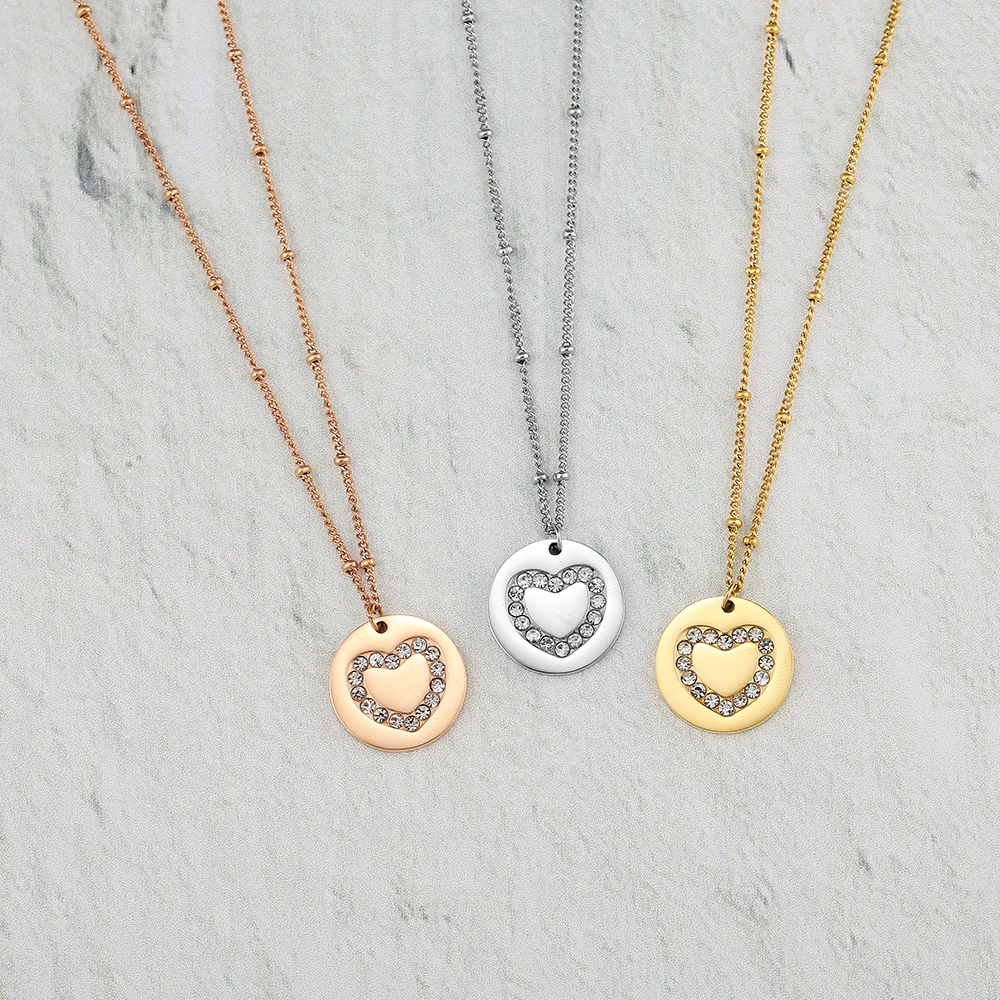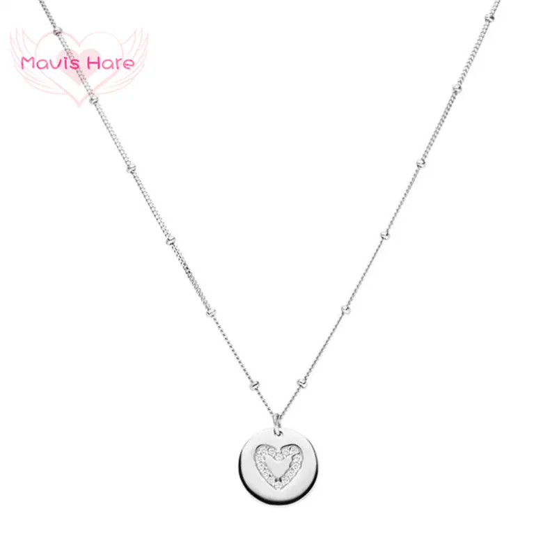 Ожерелье с монетой Mavis Hare, из нержавеющей стали, с прозрачным кристаллом, в форме сердца, подарок на день матери, кулон в виде сердца со стразами