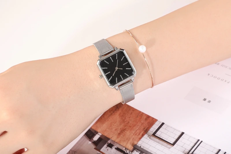 Женские кварцевые часы Zegarek Damski, Серебристые часы с квадратным браслетом, люксовый бренд, 2019