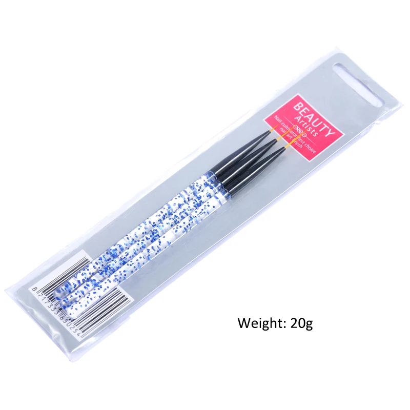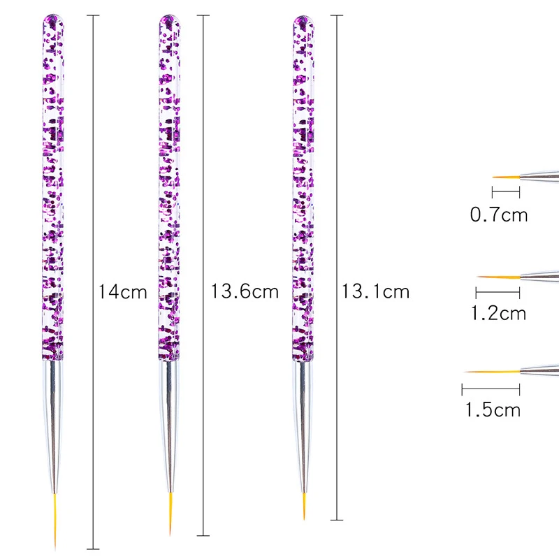 Набор кистей для дизайна ногтей, 3 шт., с кристаллами, синяя и фиолетовая ручка, тонкий лайнер, цветок, ручка для рисования гелем, для УФ-лампы, французский дизайн, кисть для рисования