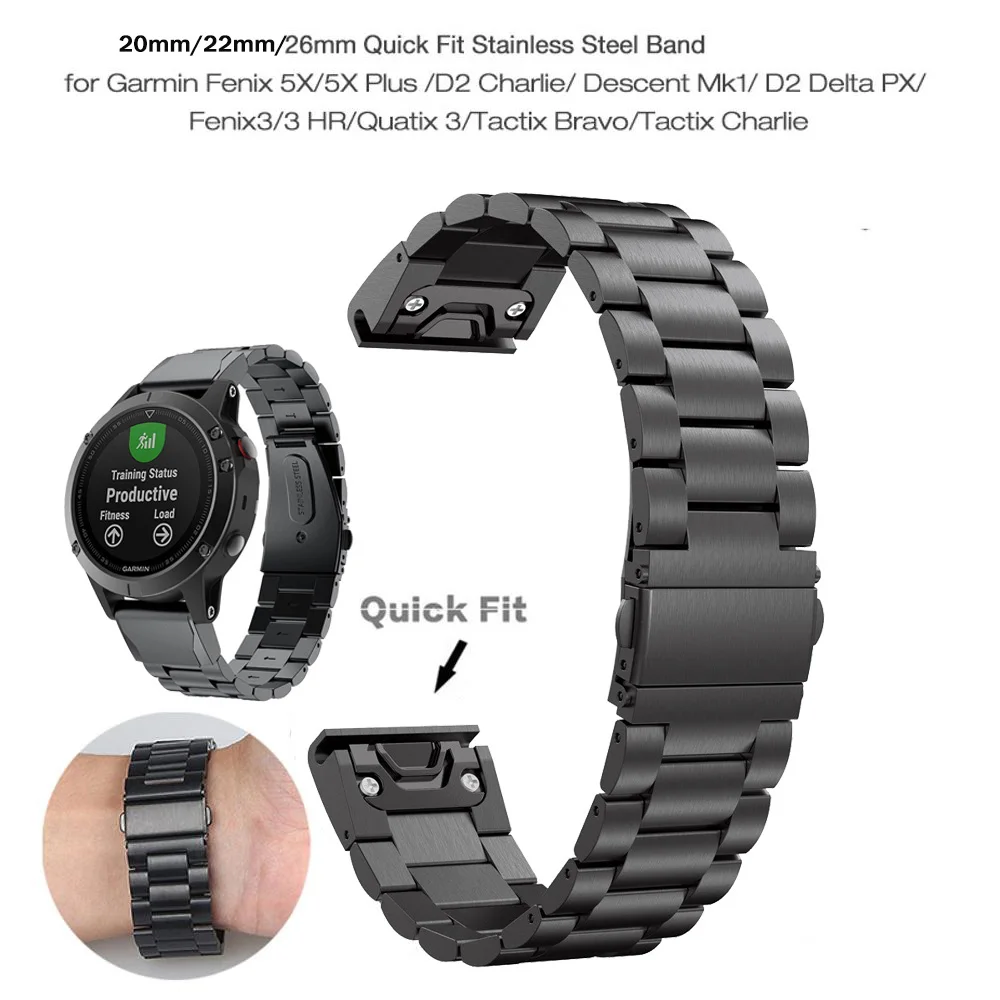 Ремешок для часов Garmin Fenix 5X, ремешок для часов Garmin Fenix 3 3 HR с GPS, быстросъемный ремешок из нержавеющей стали Easyfit, 26 мм, 22 мм, 20 мм