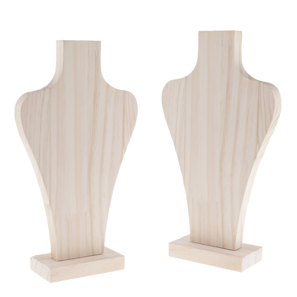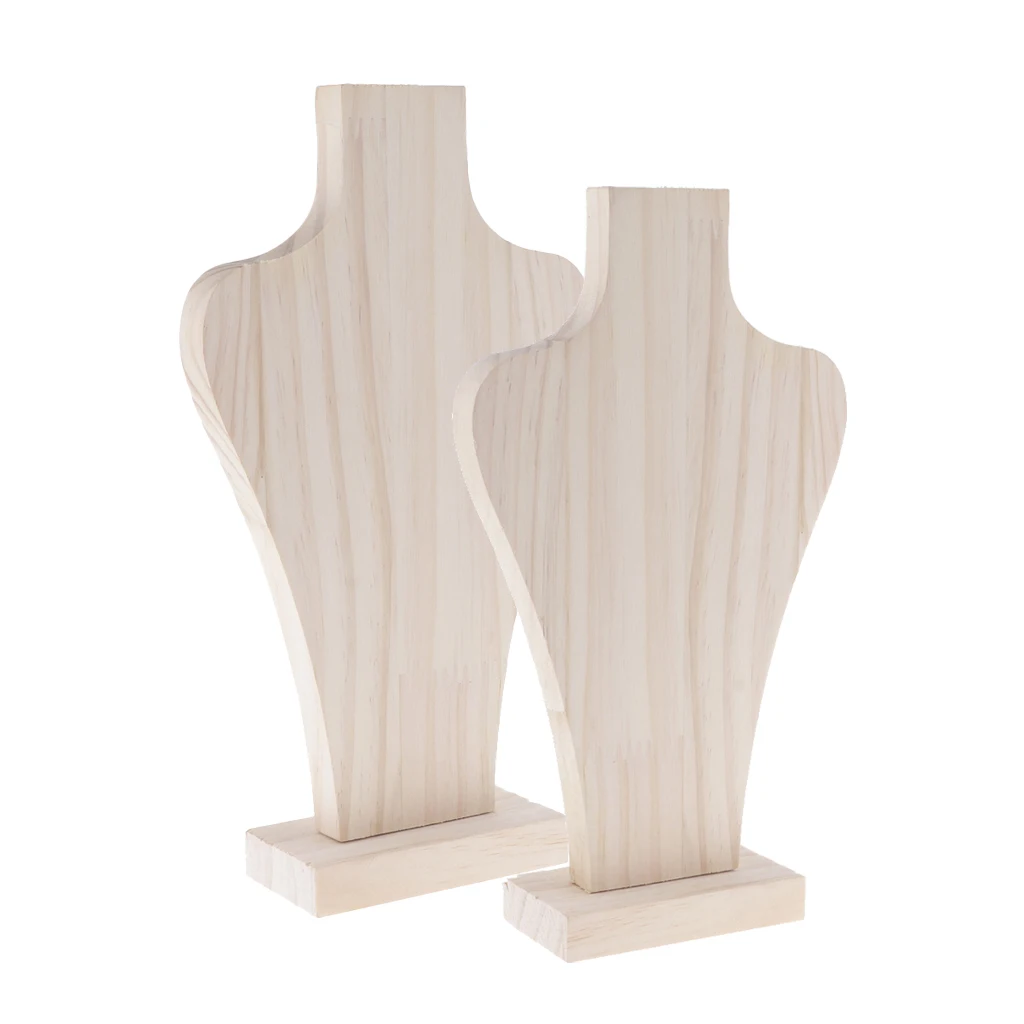 2 шт. Неокрашенный манекен из натурального дерева Бюст Дисплей ожерелье ювелирные изделия
