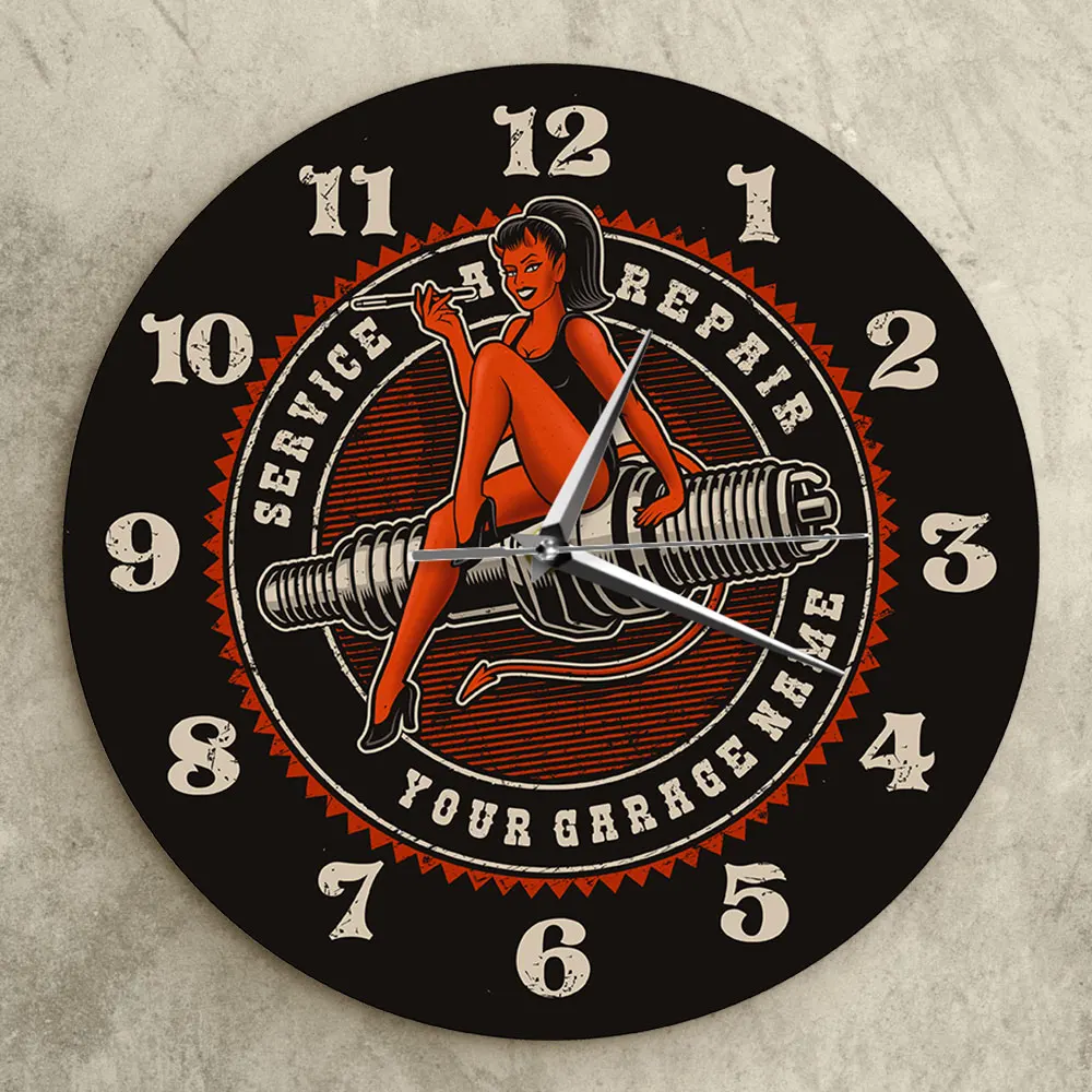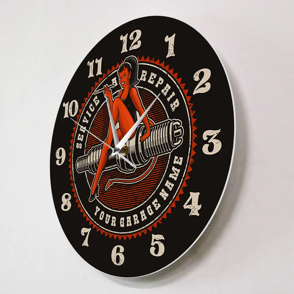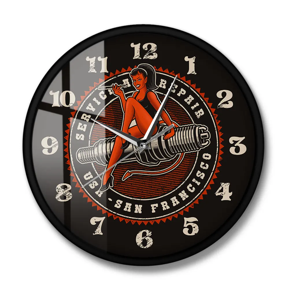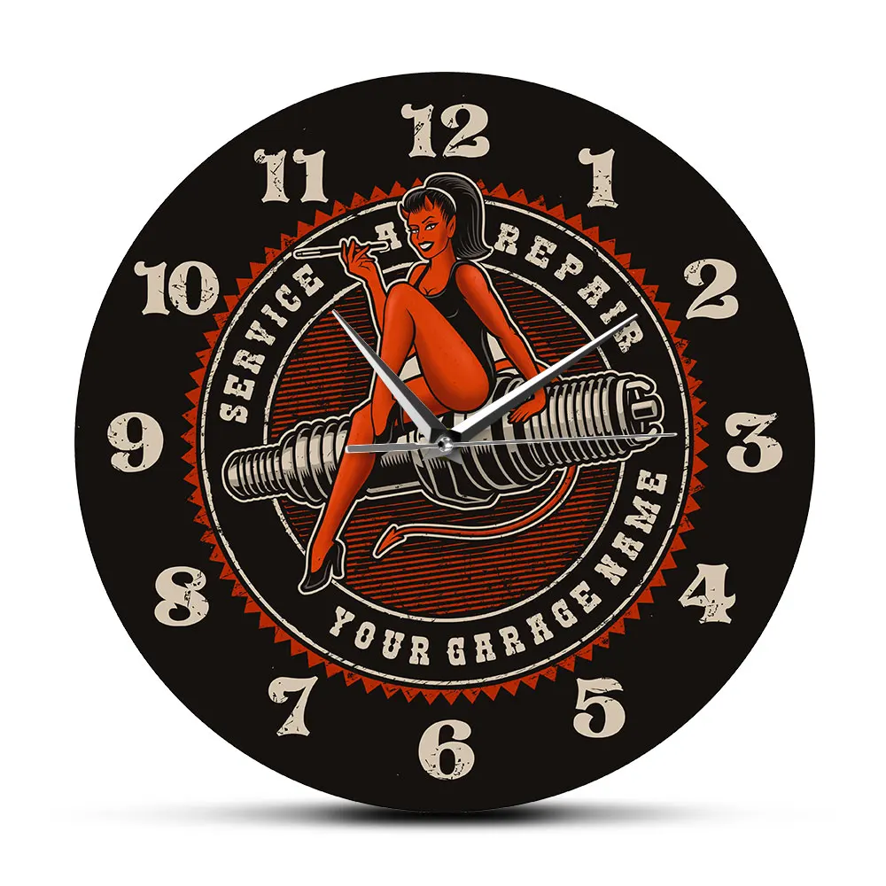 Devil Girl on Spark Plug двигатель авто автомобиль мотоцикл ремонт услуги на заказ гараж настенные часы Человек Пещера персонализированные механические часы