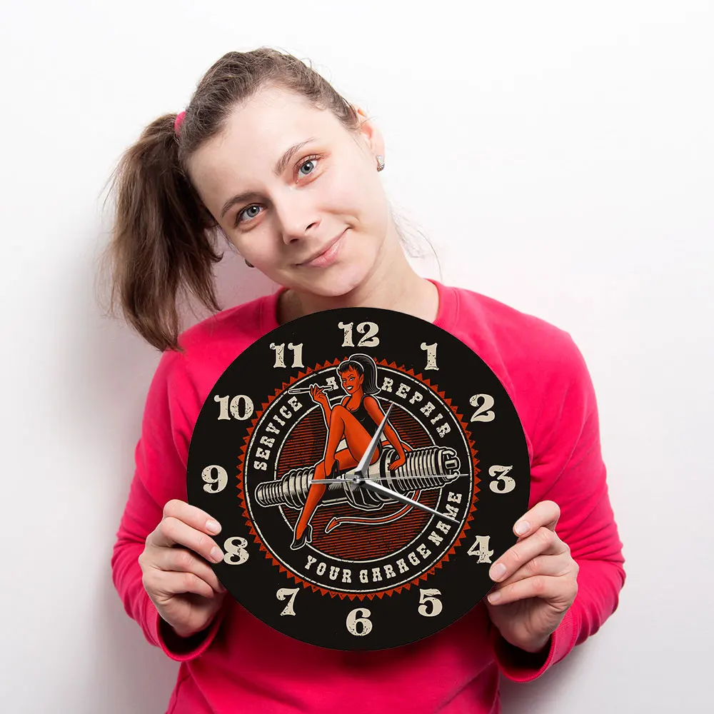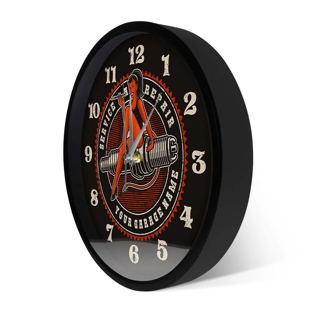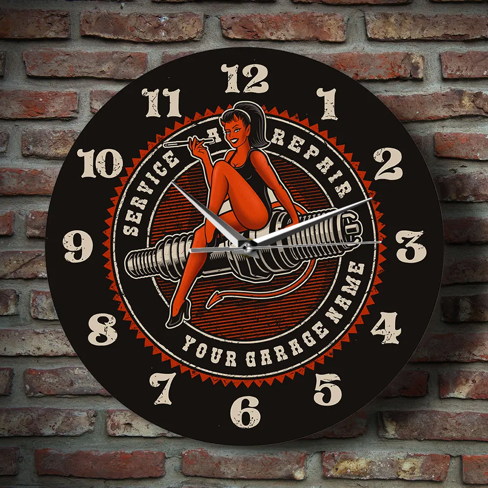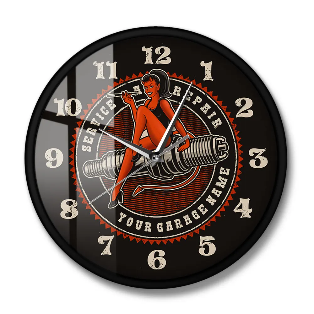 Devil Girl on Spark Plug двигатель авто автомобиль мотоцикл ремонт услуги на заказ гараж настенные часы Человек Пещера персонализированные механические часы