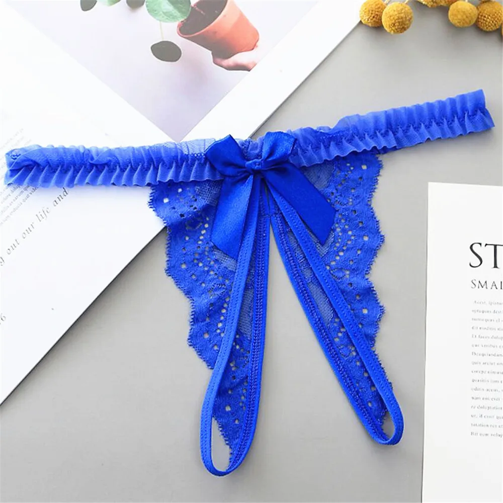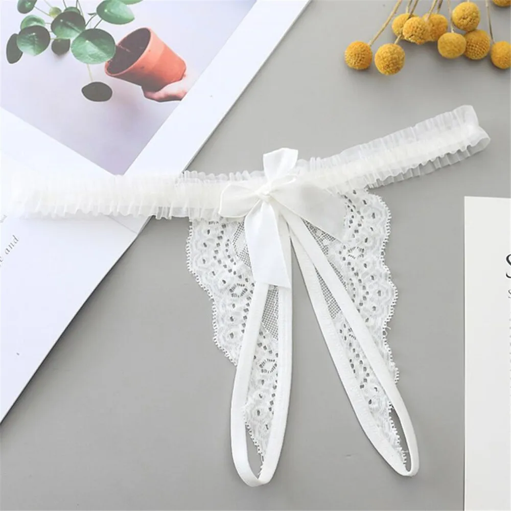 Кружевные стринги с оборками и открытой промежностью, сексуальное женское нижнее белье, прозрачные сексуальные трусики, сексуальные эротические стринги с бантом