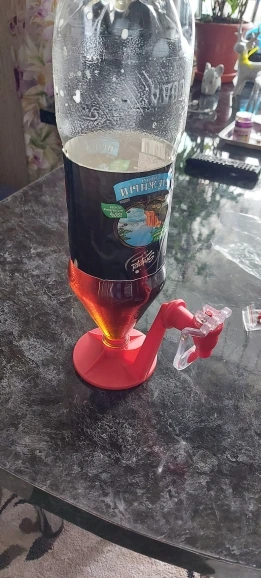 Изглежда добре, в плика има и резервно уплътнение за кранчето, но нещо не е съвсем добре измислено, защото няма от къде да влиза въздух в бутилката и тече много бавно и на тънка струйка, така че се разгазира почти напълно. Може бе би като играчка за деца би било удачен вариант, но за възрастни не е добре измислено. Махнах и пластмасовия пръстен на който се държи капачката преди да се отвори бутилката за да бъде добре завъртяно. Става за продуктите на Кока кола, но за широки капачки няма да пасне. Разбира се има вариант и аз нещо да не съм нагласил добре