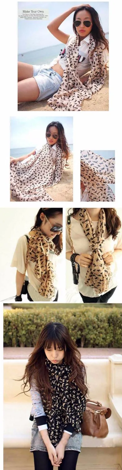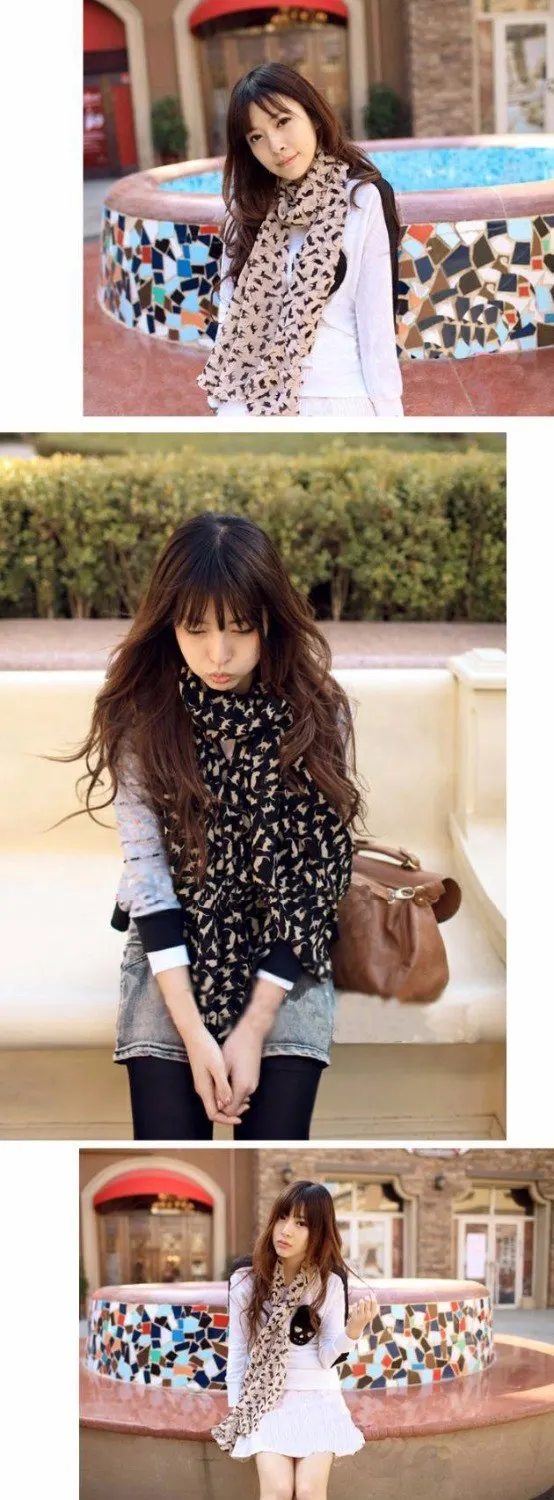Женский длинный кашемировый шифоновый шарф с котенком из искусственного шелка на весну-лето