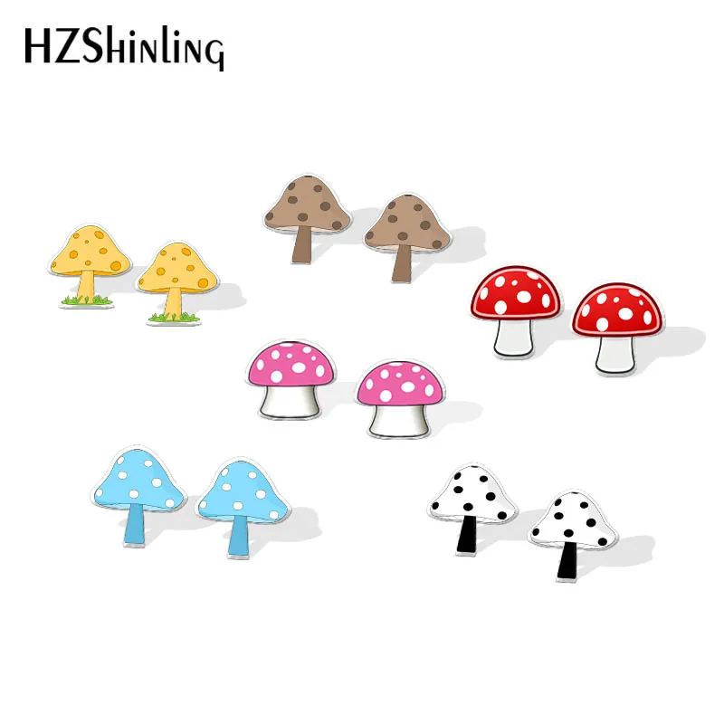 Новинка 2019, акриловые серьги в виде грибов, полимерные серьги в виде грибов, серьги-гвоздики, забавные цветные точки, грибы, серьги со вставками из эпоксидной смолы, подарки для девушек