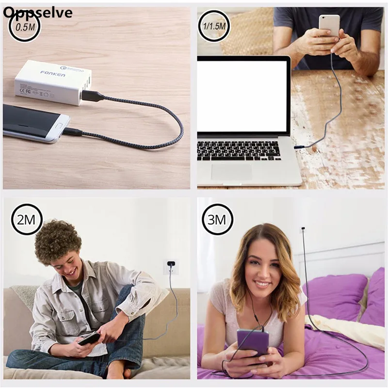 Oppselve USB Type C кабель для Samsung Xiaomi Redmi Note 7 1 м 2 м 3 м Быстрая зарядка Шнур USB-C зарядное устройство мобильный телефон кабель Type-c