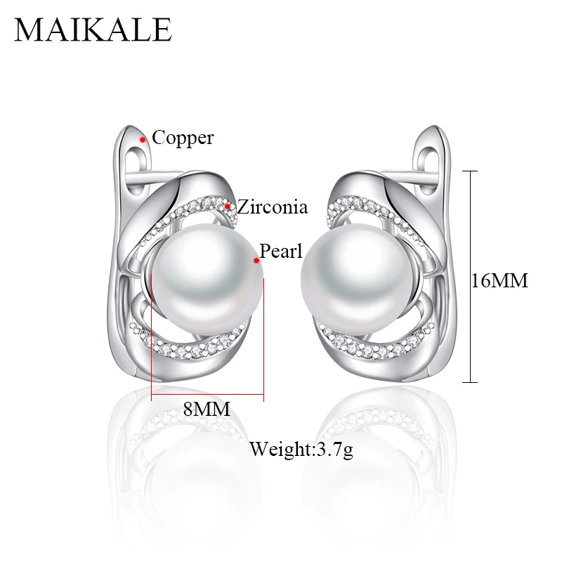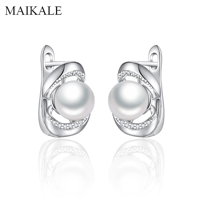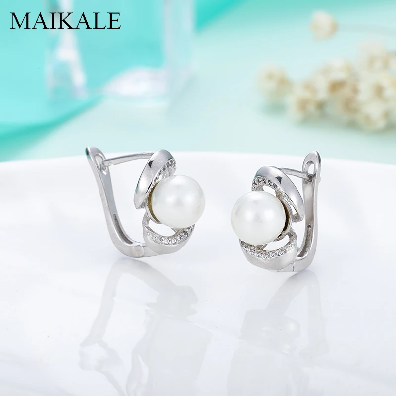 Женские Геометрические серьги-гвоздики MAIKALE, серебряные серьги с жемчугом и цирконием, 8 мм, круглый жемчужные серьги пробы, Подарочная бижутерия